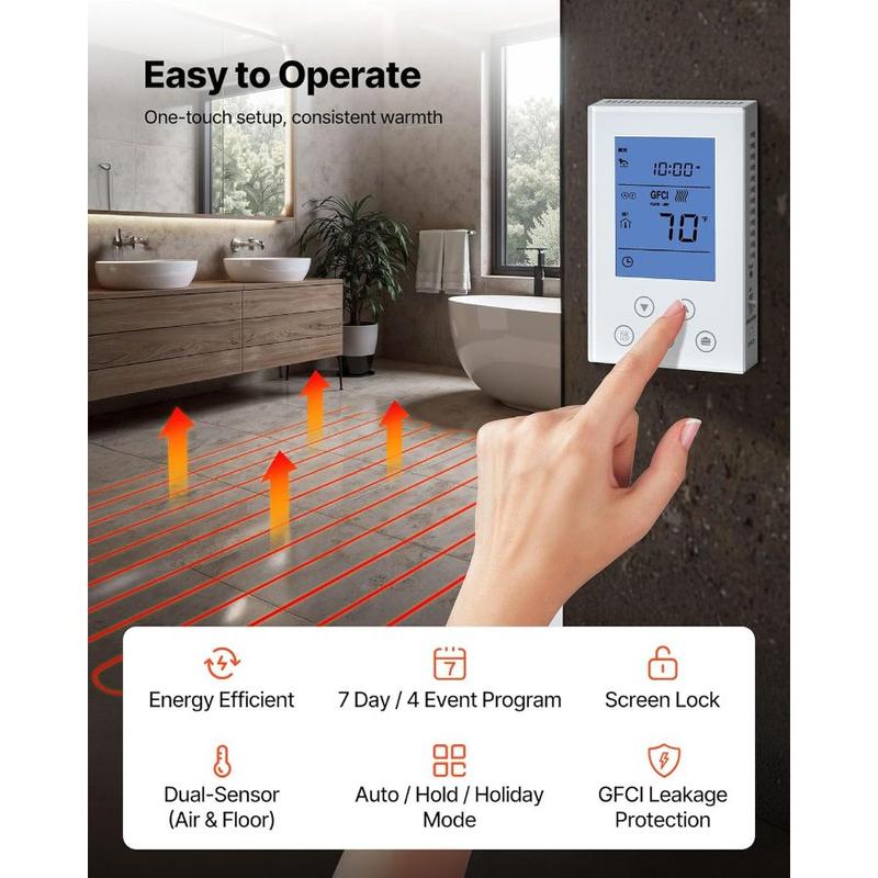 VEVOR 100 sqft Underfloor Heating Cable Kit, 120V Electric Radiant Heated Floor System, with Smart Control Thermostat Alarm, Easy Installation for Tile, Stone, Vinyl, Home ImprovementVEVOR 100 sqft Underfloor Heating Cable Kit, 120V Electric Radiant Heated Floor System, with Smart Control Thermostat Alarm, Easy Installation for Tile, Stone, Vinyl, Home Improvement
