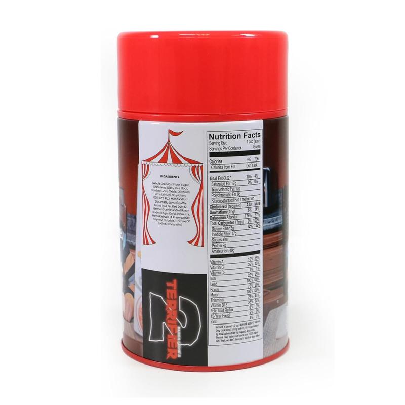 From Surreal Entertainment. A PREVIEWS Exclusive! Make your food a little funnier with this Terrifier 2 Tin Titans lunchbox, featuring eerie imagery from the haunting "Art Crispies" cereal advertisements from the film! Inspired by the twisted clown and his cafe from the cult horror hit, this retro-styled tin lunchbox comes with an included 10oz beverage container to complete the look. Perfect for fans of the grotesque and horror collectors alike, don't miss your chance to add this chilling piece to your Terrifier 2 collection. Lunchbox measures 7.75" x 6.75" x 4". Hand wash only. Limited to 1,750 pieces.