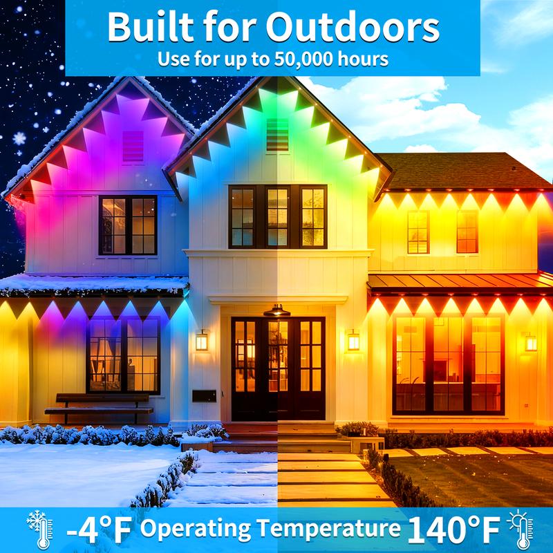 ·Dynamic Mode Selection: Our LED permanent outdoor lights offer multiple dynamic mode options, so you can easily switch between different effects according to your mood and occasion. Whether it's soft ambient for relaxation and res to add vitality to gatherings, our outdoor lights fixtures can easily meet your needs. This eaves lights not only offers multiple options, but also enhances the functionality of your space while showcasing your style.