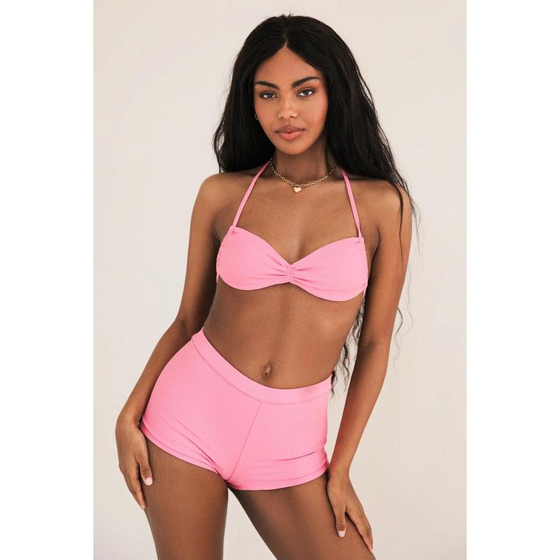 The Farrah Short brings style and comfort without skimping on fun. With its elastic waist and thick, supportive material, these bottoms will be your new beach-day staple. Our Farrah Short is one of our most versatile styles, but pair with our Christina, Jamie or Gracie Top for the perfect set.