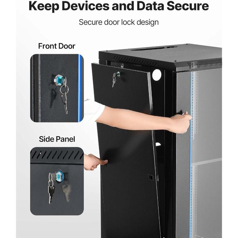 VEVOR 22U Server Rack Cabinet, Network Cabinet Wall Mount, 23.6 in Depth, Network Rack Enclosure with Locking Tempered Glass Door, 4 Casters, Side Panels, for 19 IT Equipment, A/V DevicesVEVOR 22U Server Rack Cabinet, Network Cabinet Wall Mount, 23.6 in Depth, Network Rack Enclosure with Locking Tempered Glass Door, 4 Casters, Side Panels, for 19 IT Equipment, A/V Devices