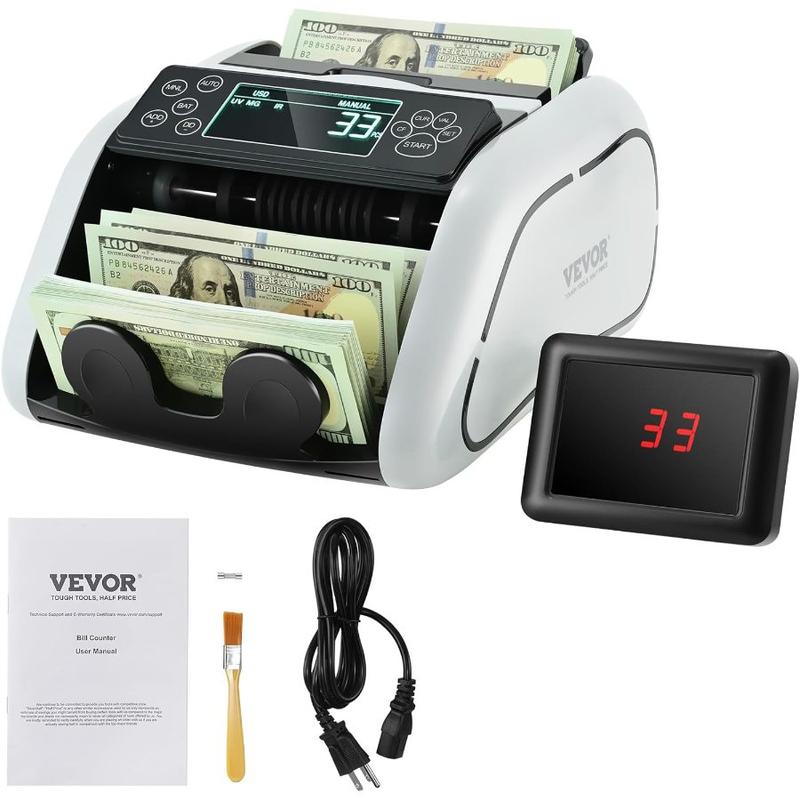 VEVOR Money Counter with UV, MG, IR, DD Detection for USD EUR, Plus Addition Batch Capabilities, Big LCD External Display IncludedVEVOR Money Counter with UV, MG, IR, DD Detection for USD EUR, Plus Addition Batch Capabilities, Big LCD External Display Included