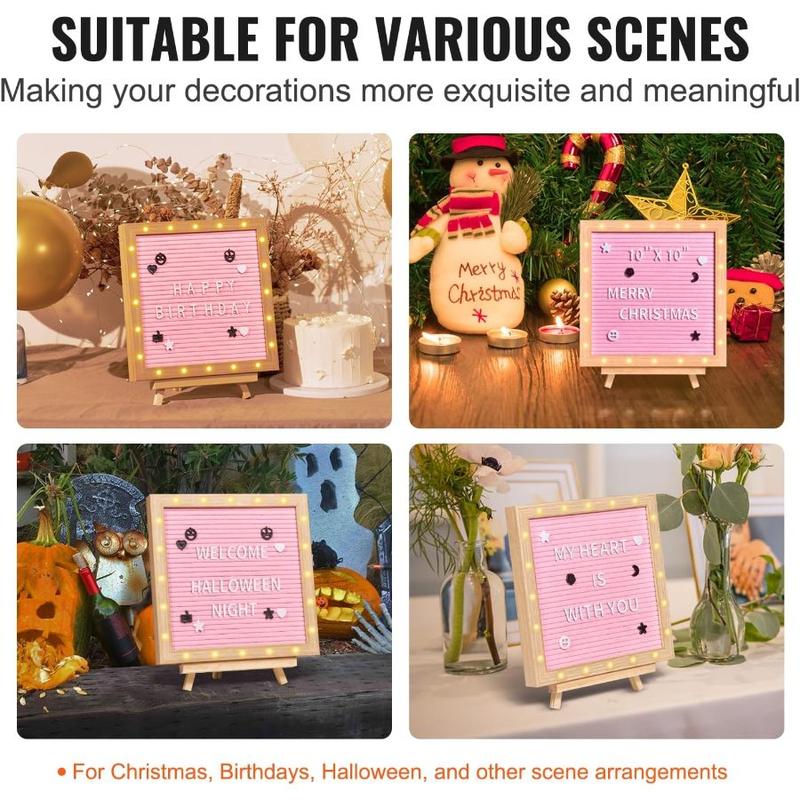 VEVOR Pink Felt Letter Board, 10x10 Felt Message Board, Changeable Sign Boards with 510 Letters, Stand, and Built - in LED Lights, Baby Announcement Sign for Home Classroom Office Decor WeddingVEVOR Pink Felt Letter Board, 10x10 Felt Message Board, Changeable Sign Boards with 510 Letters, Stand, and Built - in LED Lights, Baby Announcement Sign for Home Classroom Office Decor Wedding