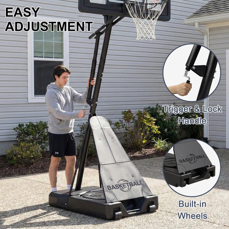 ·Extra Large Stable Base with Extra Sandbag: The base measures 44 inches and has a water capacity of 14.3 gallons (143 lbs of water). Our additional sandbag (No sand) is designed to stabilise the base and secure the base of the portable basketball hoop, greatly reducing the chances of the hoop tipping over