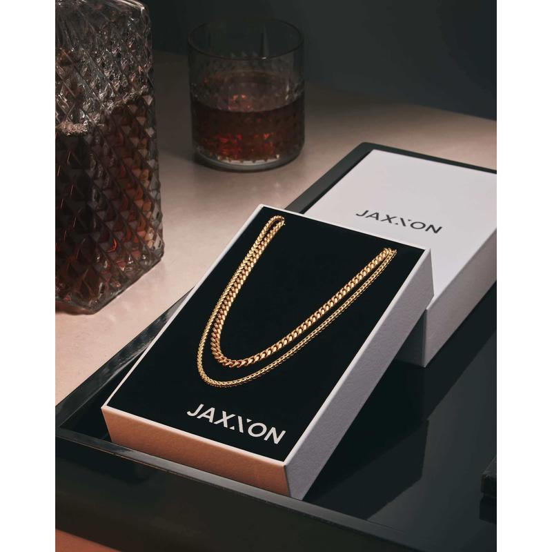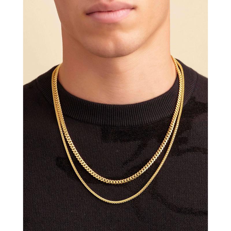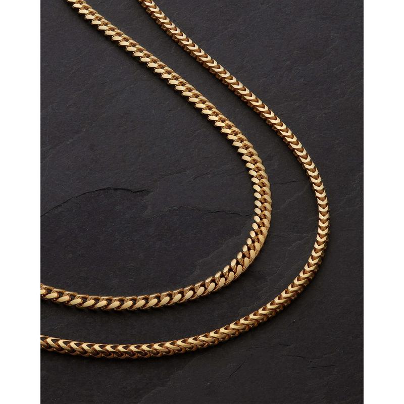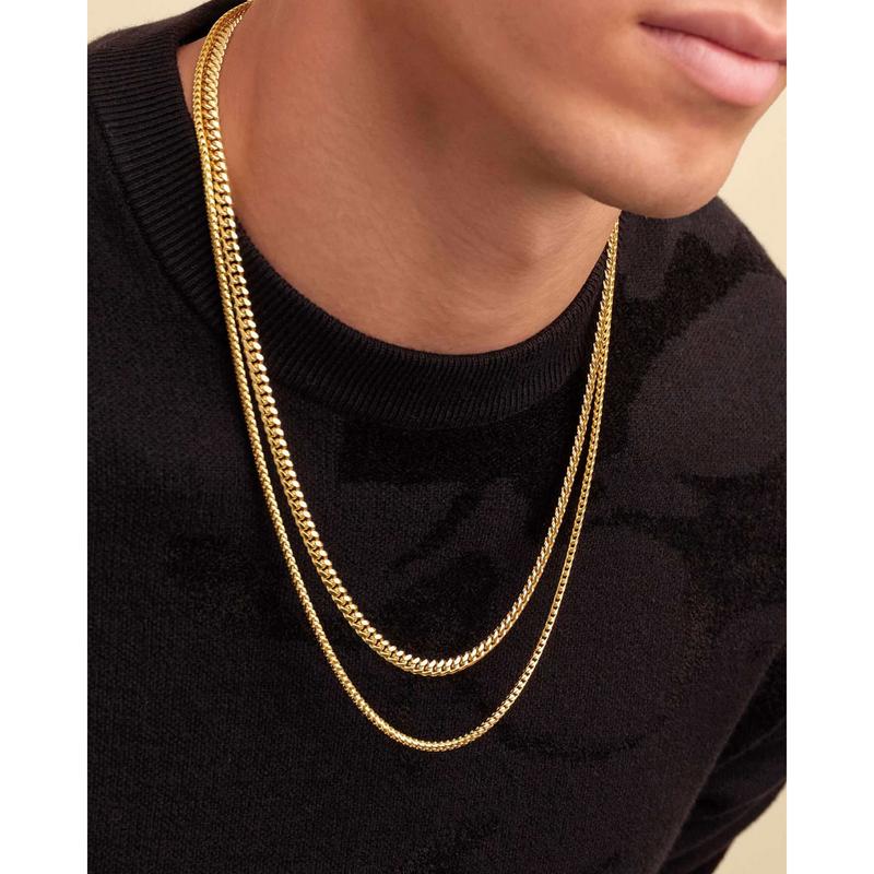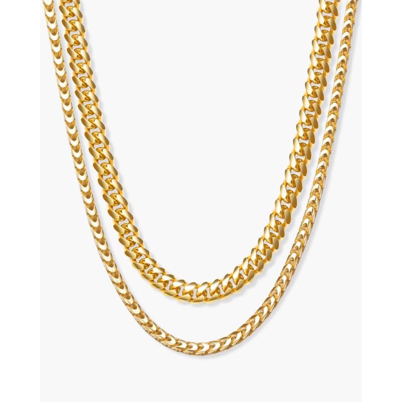 Elevate your collection with the gold Cuban + Franco Chain Stack, featuring the bold 5mm Cuban and a sleek 3mm Franco. Finished with our signature engravable box clasp, this timeless stack is made for personalization and everyday wear.