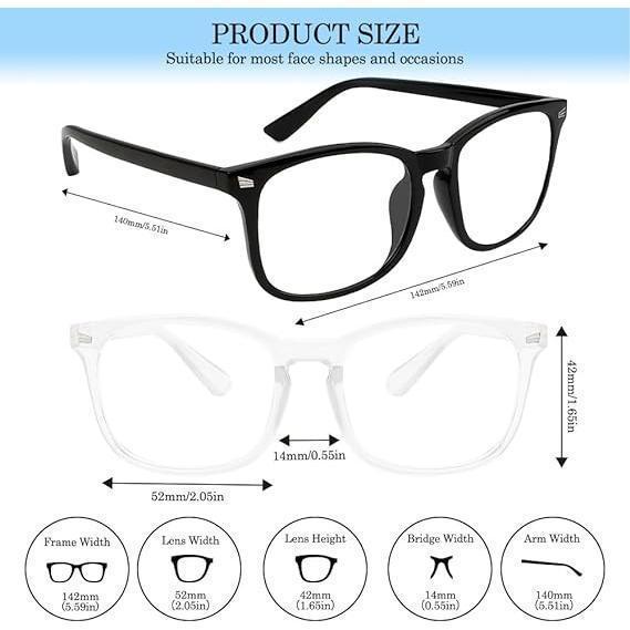 High Quality Blue Light Glasses These glasses feature polycarbonate HD lenses. Metal chains in the frame ensure stability and sturdiness. Perfect for gaming, computer use, and office work. Ideal for anyone spending long hours on screens. ️ Stylish Design The classic frame design suits most faces of men and women. It offers a timeless look that complements any style. The glasses provide a classic fit suitable for both men and women. Perfect for everyday use. Specifications Lens Width: 52mm (2.05in) Lens Height: 42mm (1.65in) Temple Length: 140mm (5.51in) Nose Bridge: 14mm (0.55in) Frame Width: 140mm (5.51in)