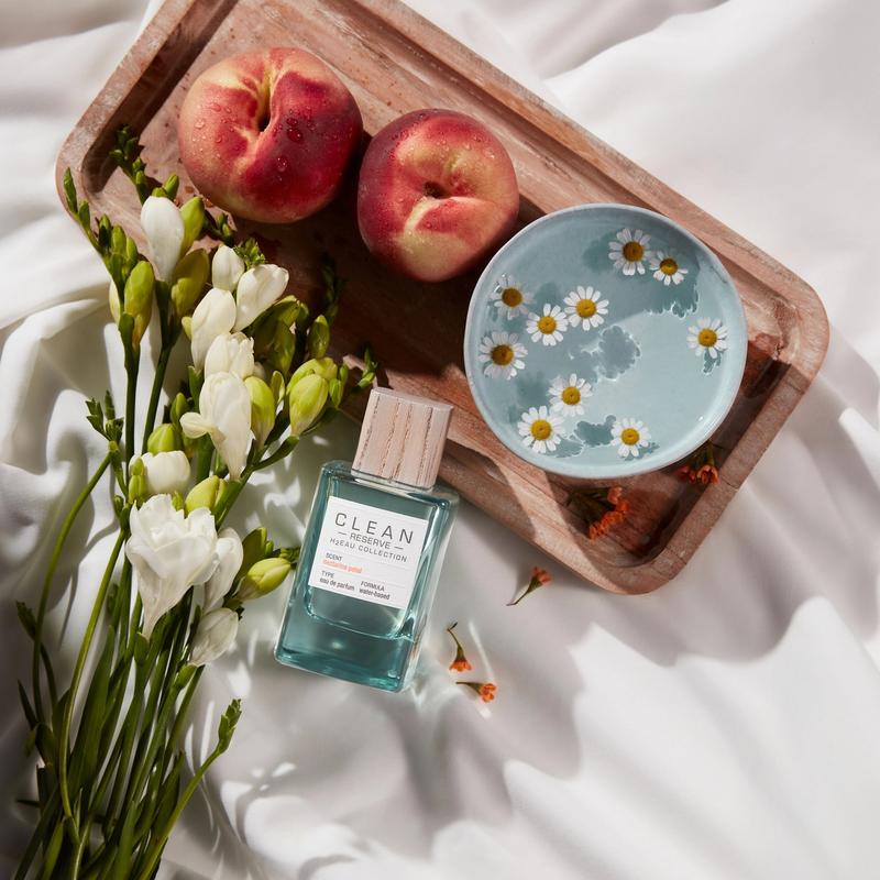 Luscious & Irresistible. Inspired by Springtime’s succulent nectarine sweetness and luminous flower petals. Mouthwatering nectarine journeys through a wild garden of golden chamomile and peach blossoms before settling into a radiant and delectable blend of sweet amber and musk.