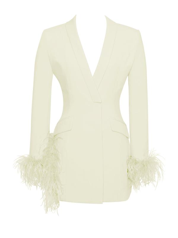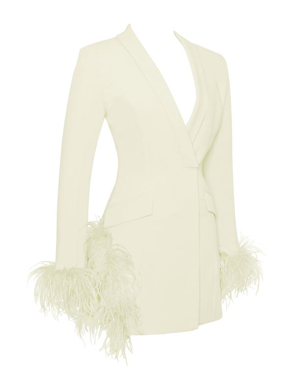 Madeline Pearl White Feather Trim Blazer Dress