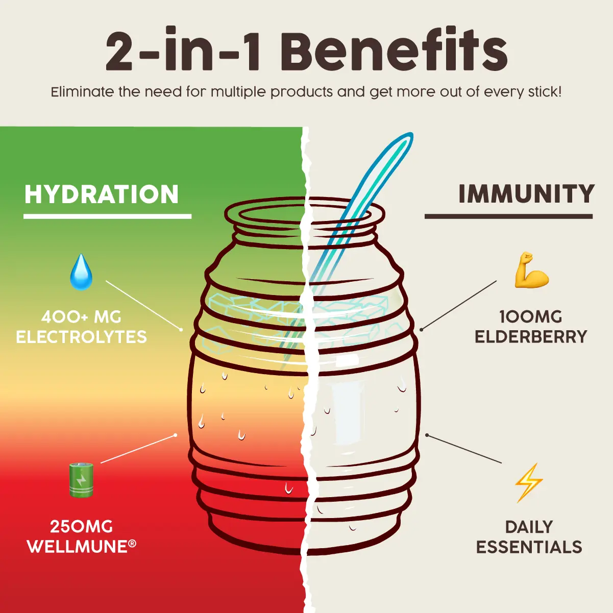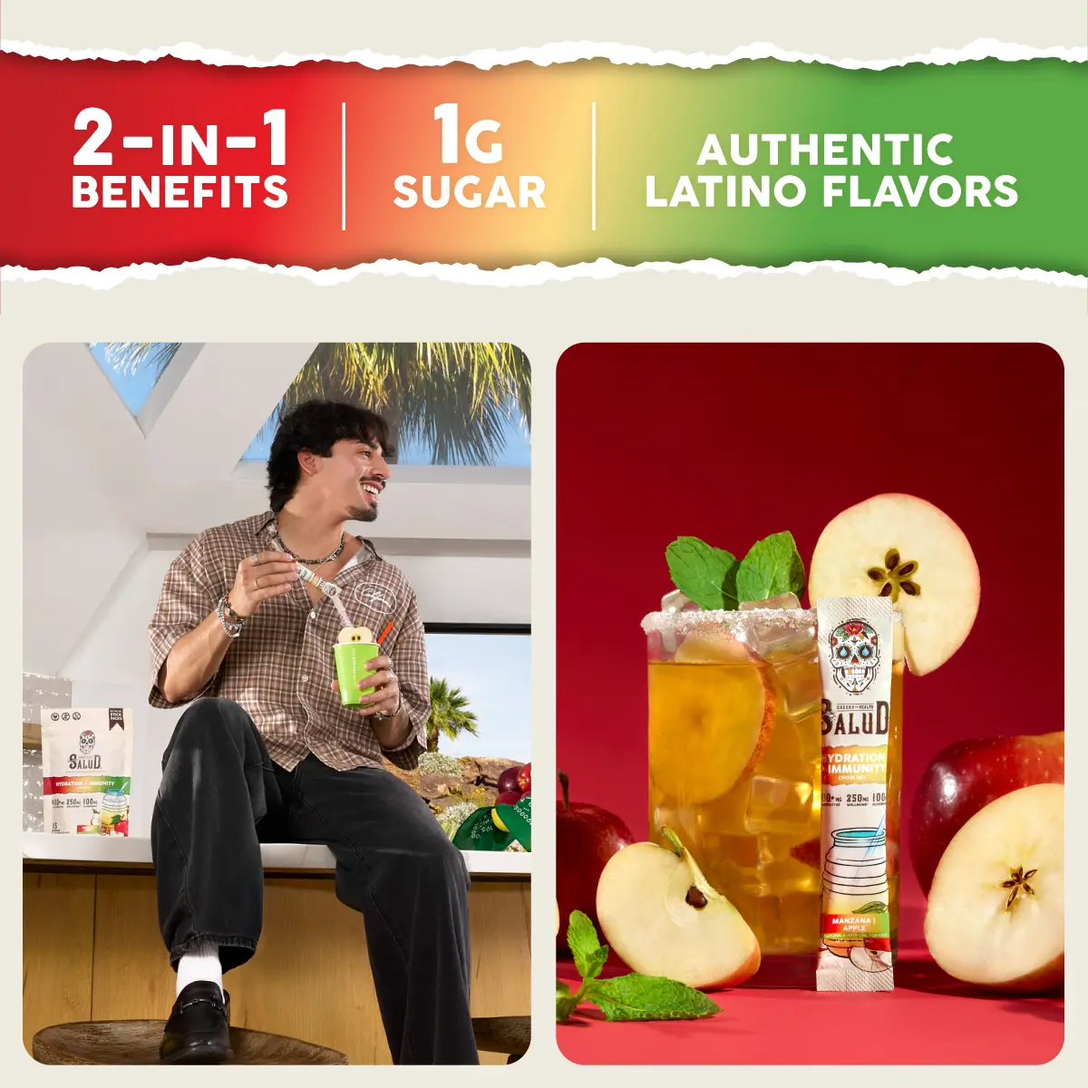 ·2-in-1 HYDRATION & IMMUNITY - Our on-the-go stick packs are loaded with electrolytes, antioxidants, vitamins, and minerals perfect for before or after a late night out, during a hard workout, or first thing in the morning. Eliminate the need for multiple products with one packet, Salud’s got you covered!