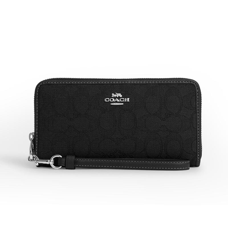 -This COACH wristlet wallet features the brand’s iconic signature pattern in a versatile neutral tone.