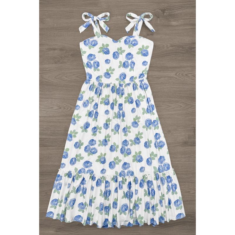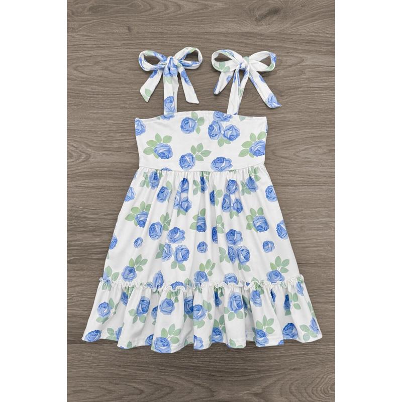 Twinning is winning in these Blue Rose Dresses! These dresses feature a feminine fluttery tank sleeve with an allover blue rose design. This dress is made from soft and breathable fabric that will keep her comfy during all adventures. The flowy style design offers a feminine fit, while the floral print adds a sweet touch. She can pair it with some SIP bows & our sandals for the perfect look! Little ones love to match their mommy!