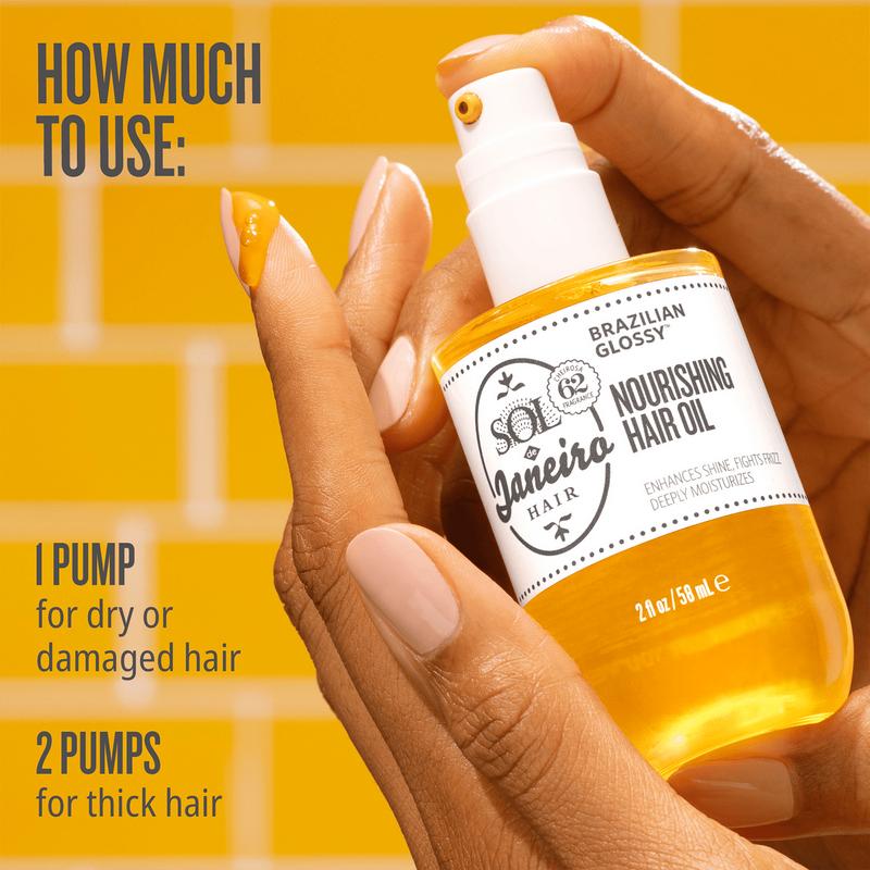 Infused with a powerful blend of Brazilian oils, this nourishing hair oil is designed to enhance your hair's health and natural shine. It provides long-lasting frizz control, and deeply moisturizes thirsty strands for a nourished look. The oil also repairs damage, making your hair stronger and more resilient. It's formulated with our iconic Cheirosa '62 scent so your hair always smells amazing.