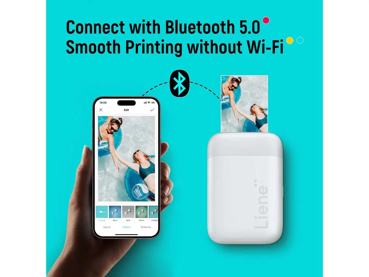 5. Liene Pearl K100 2x3" Portable Photo Printer w/ 50 Zink Photo Papers, White