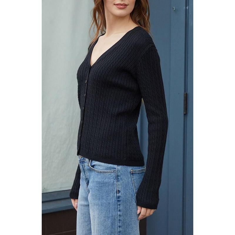 John Galt Women's Black V-Neck Cable Knit Cardigan