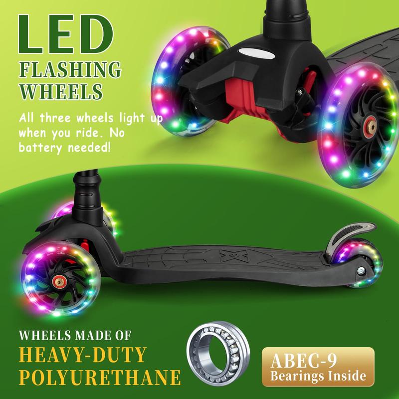 Exciting Flashing Wheels: The three wheels of this toddler scooter feature dazzling LED lights that create a captivating shine, enchanting young riders and ensuring visibility in low light, providing parents with added peace of mind