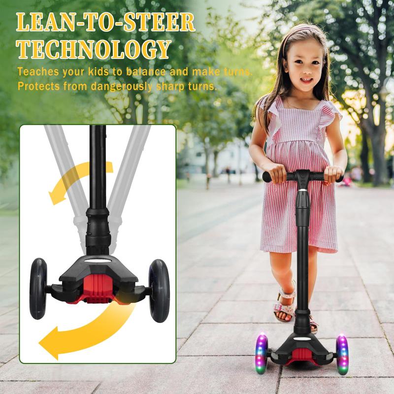 Ideal for Beginners: Designed with lean-to-steer technology, this mini scooter for toddler allows kids to turn by leaning, helping to develop their balance and coordination while making riding fun and intuitive