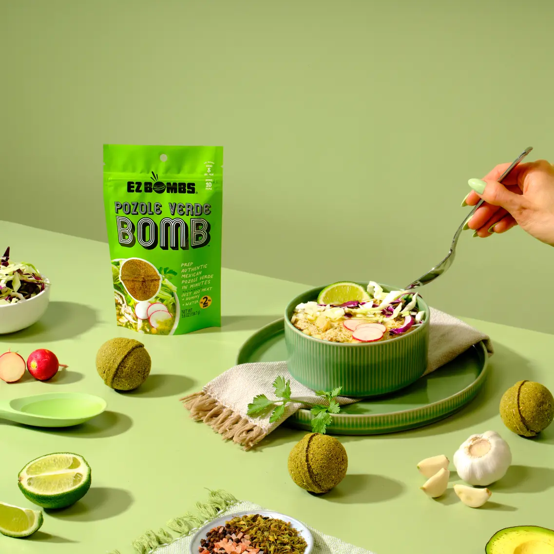 Elevate your cooking with EZ BOMBS Pozole Verde Bombs! Enjoy authentic Mexican green pozole made easy. Each seasoning spice bomb is packed with bold, traditional flavors inspired by classic Pozole Verde recipes; no chopping, blending, or guesswork required. Perfect for families, meal prep, or busy weeknights, each Bomb serves up to 5.