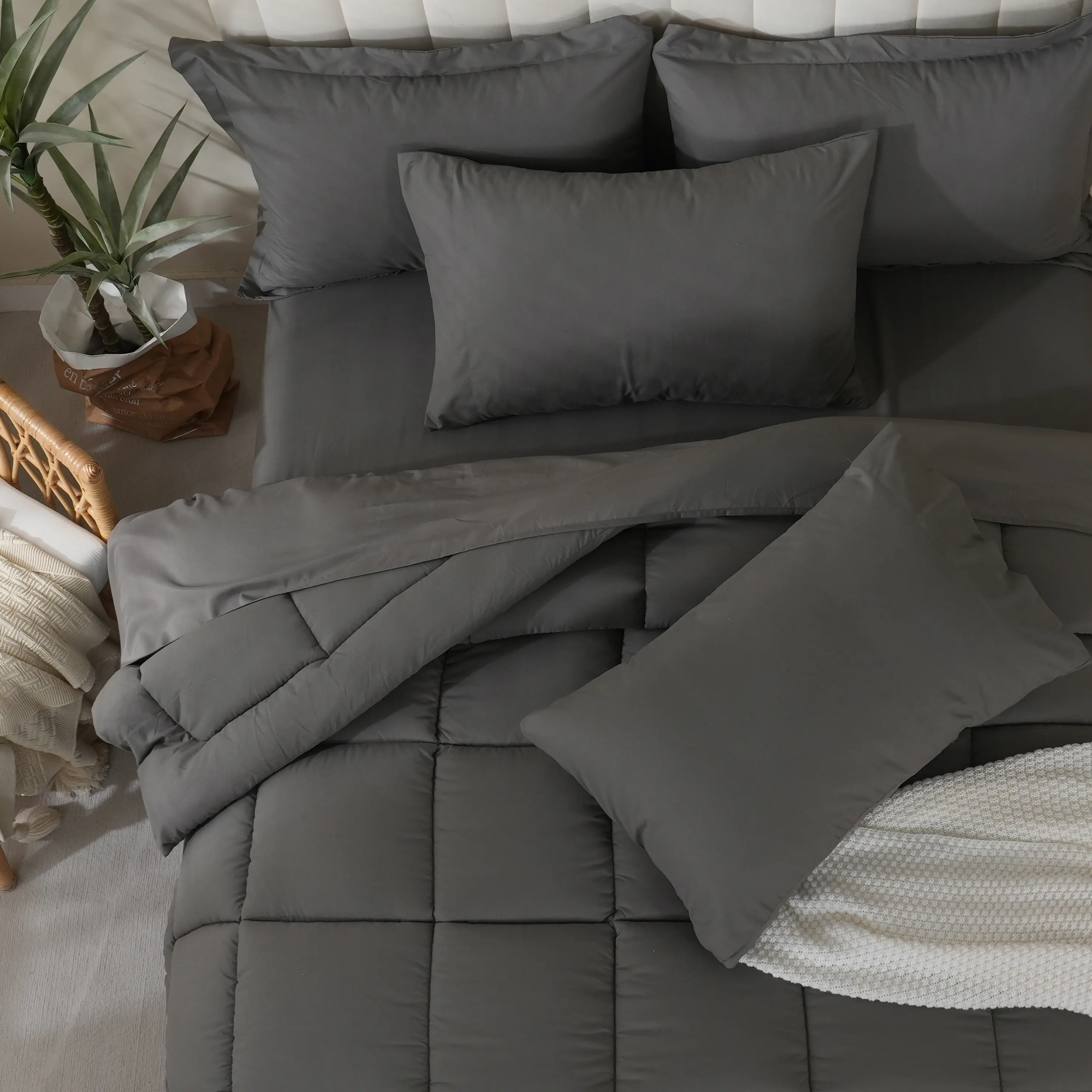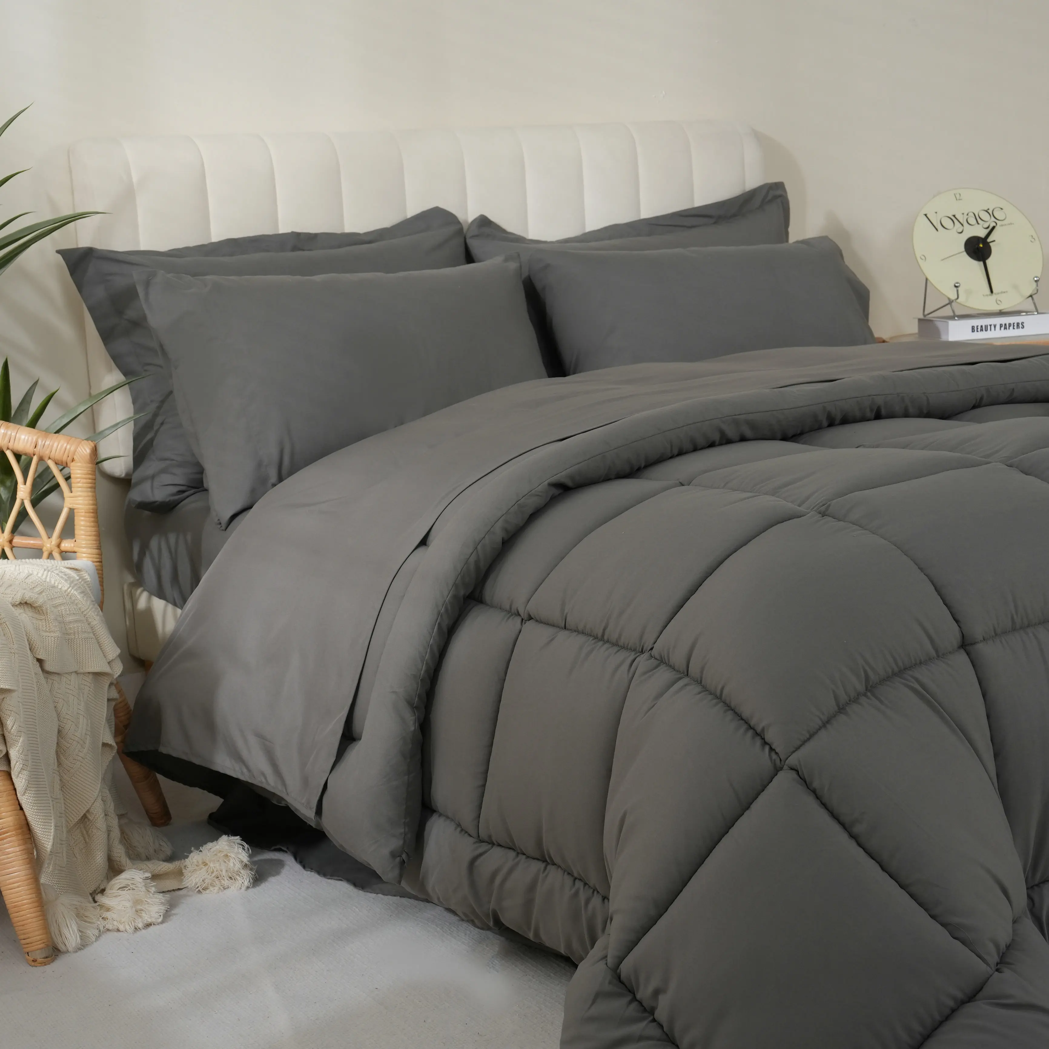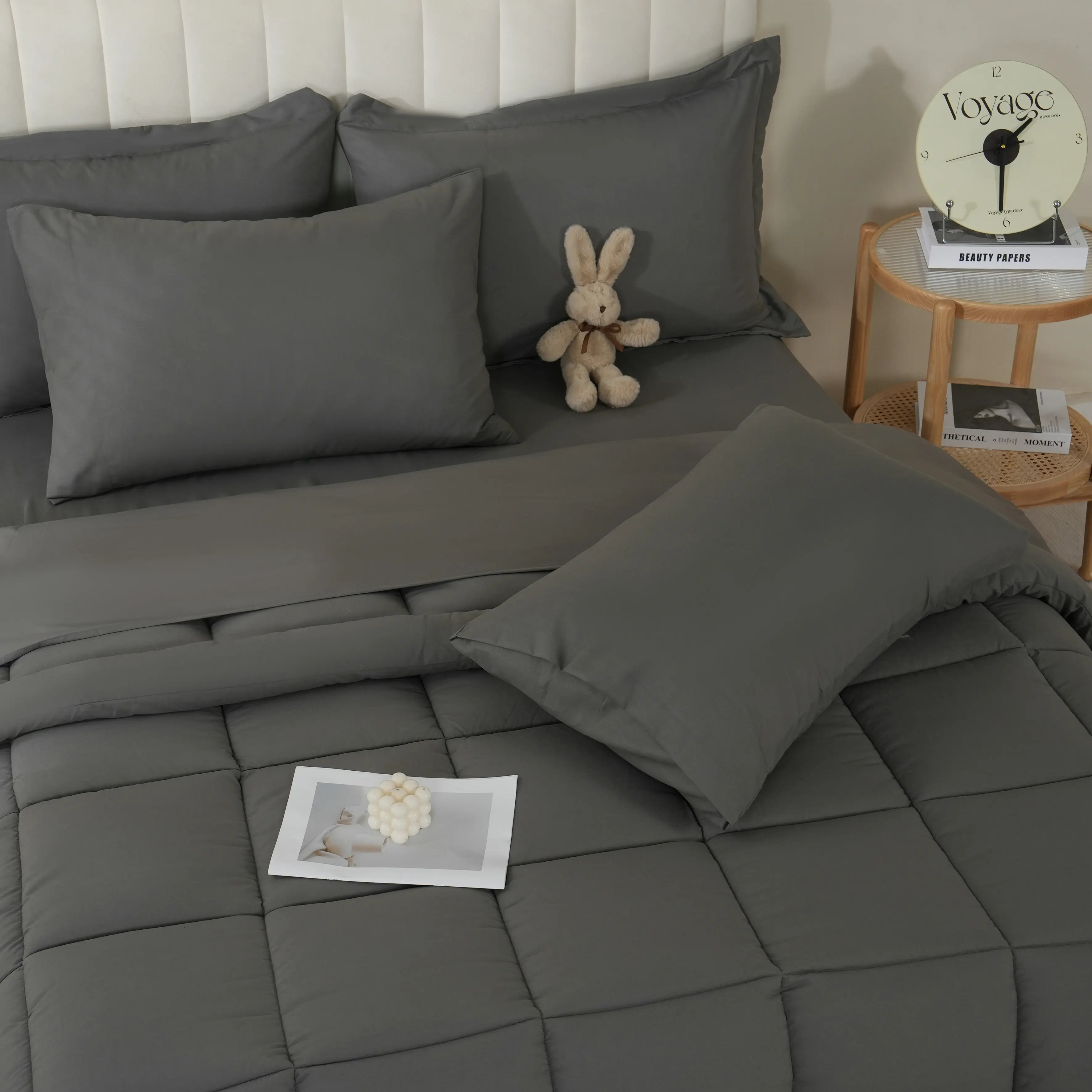This complete bundle includes 1 comforter, 1 flat sheet, 1 fitted sheet, 2 pillow shams, and 2 pillowcases, so no extra pieces are needed. Whether you’re upgrading your own bedroom or giving a thoughtful gift, it delivers warmth and comfort to any home. Neat square stitching ensures even filling distribution, preventing clumping or shifting and maintaining its shape wash after wash.