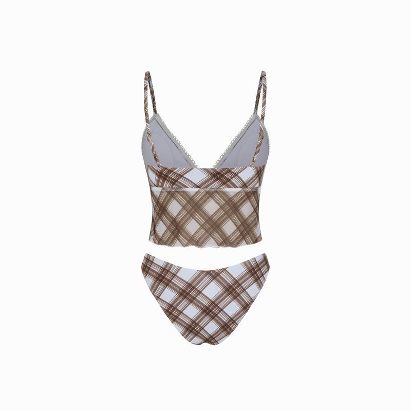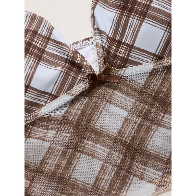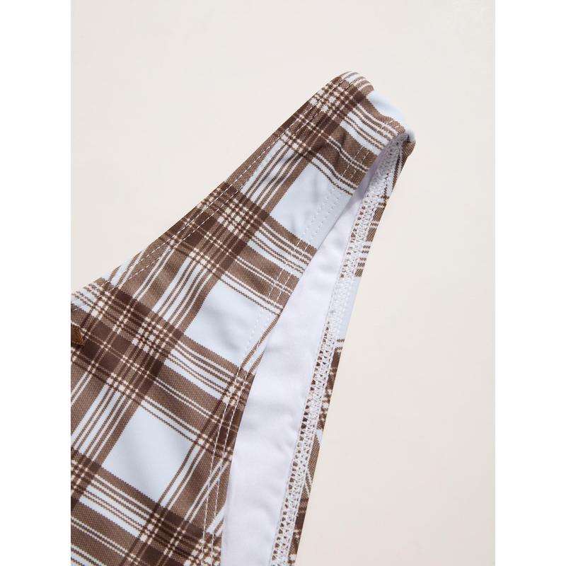 5. Cider High Stretch Checks Sweetheart Tankini Cheeky Bikini Set
