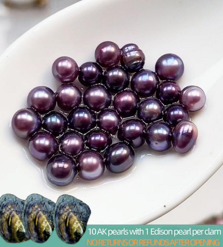 Pearl category: Freshwater pearl Pearl color:  Deep color Pearl quantity: 10 AK pearls with 1 Edison pearl per clam Pearl Size: 4-7 mm Pearl shape: round shape