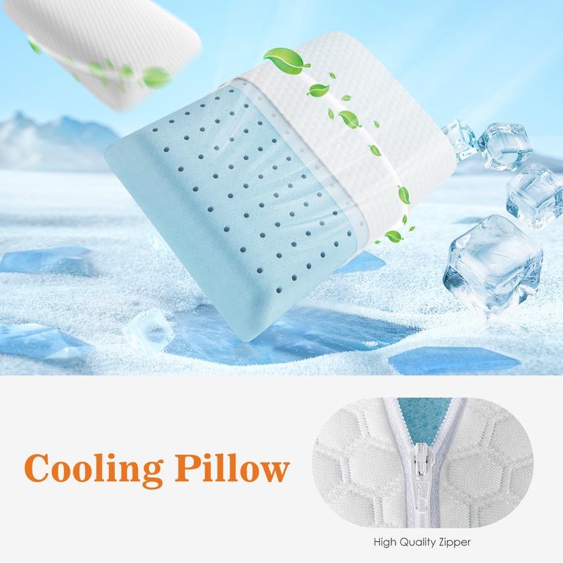5. Memory Foam Pillows for Sleeping, Bed Pillows for Adults with Washable Cover and Breathable Mesh, Gel Cooling Pillow for Back and Side Sleeper Support