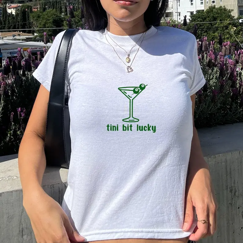 [Sale up to 50%] [Free Ship] Tini bit lucky baby tee, martini shirt, 8 ball tee, st patricks day baby tee, st pattys day apparel, cocktail shirt, shamrocked, lucked up