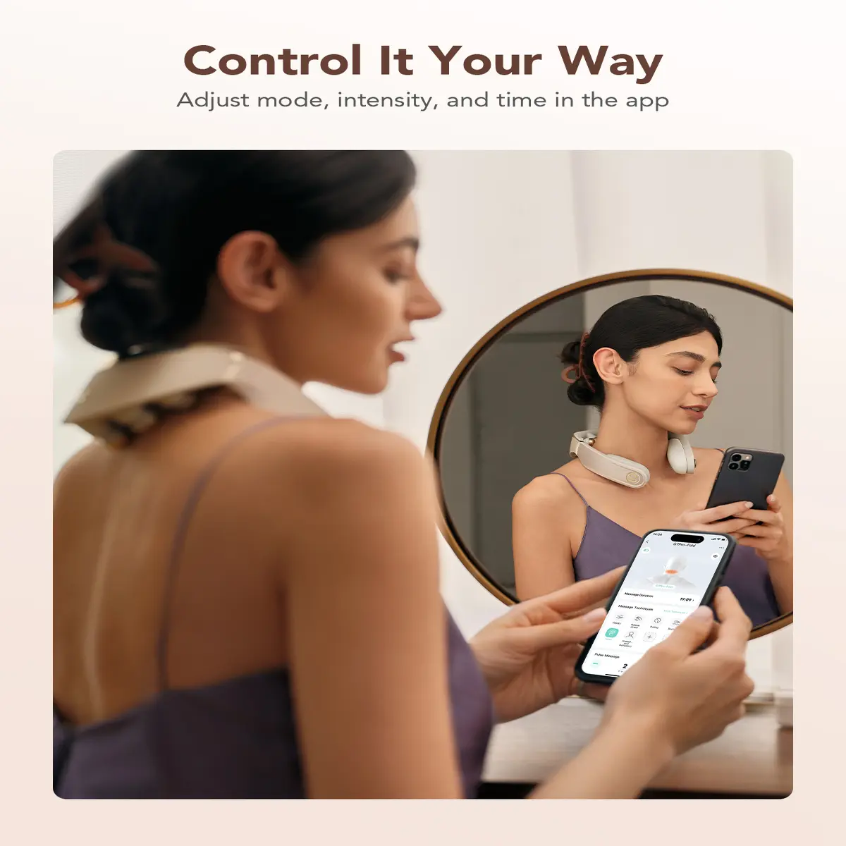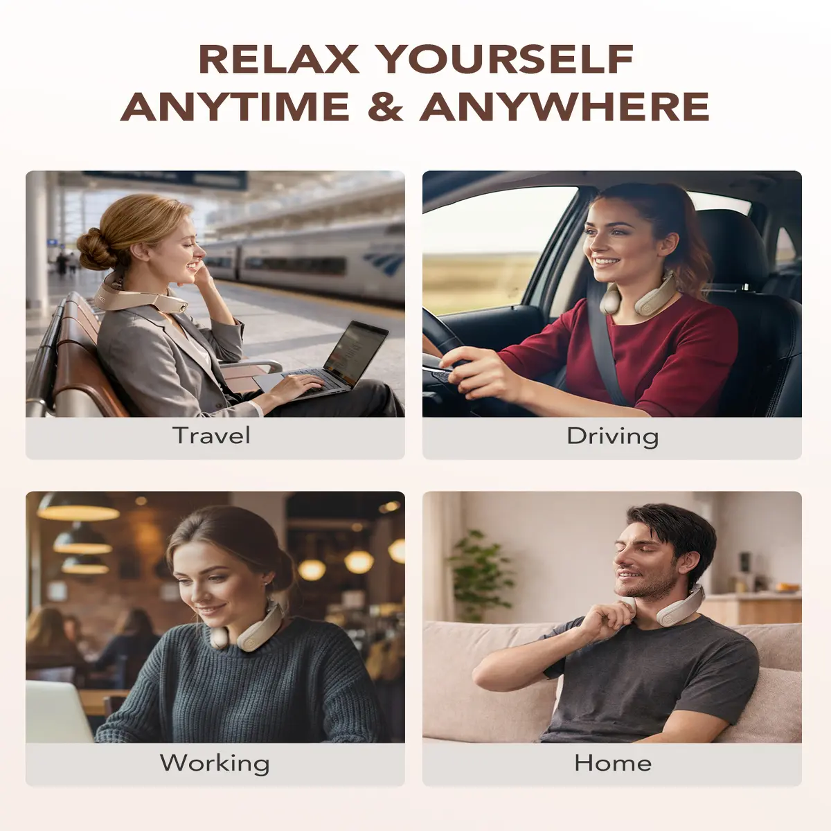I bought this neck massager because my neck often feels sore from handcraft work and looking down at my phone. It’s white, compact, and stylish. The electric pulse feels like tiny taps, not just vibration, and the heating mode is very relaxing. The magnetic remote is convenient to use and store.
