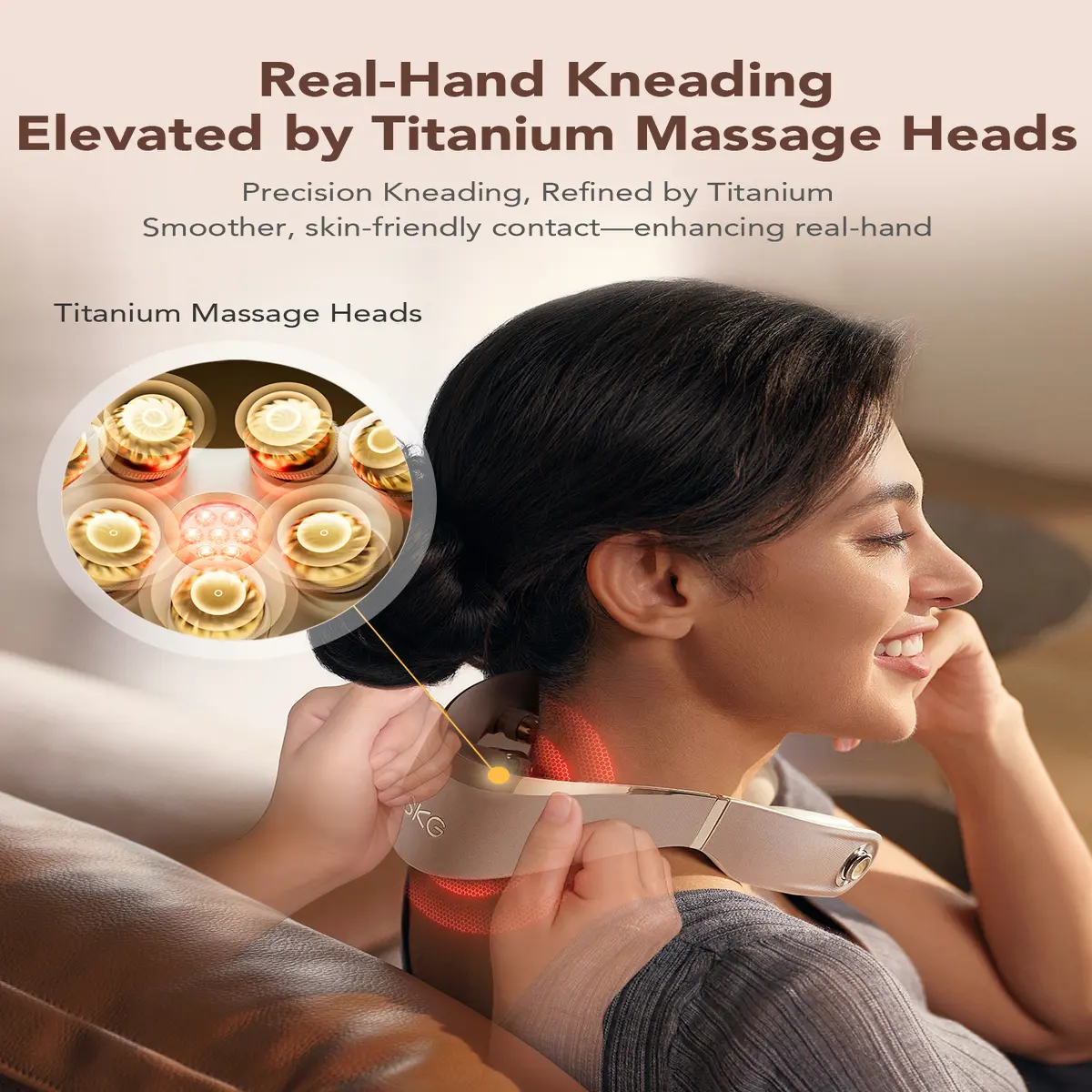 SKG Foldable Neck Massager for Pain Relief Deep Tissue Vibration Cordless Travel Massager,Portable 3D Neck Massager for Office Home Car Travel Gold Titanium Neck Massager 3.0 Valentine Gifts