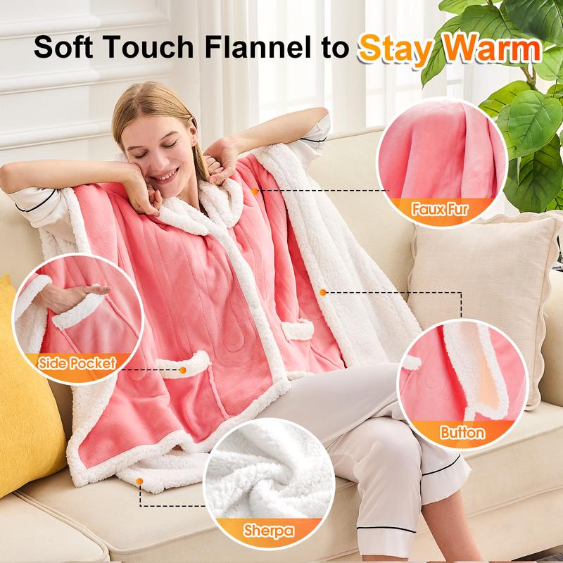 【Discover your warm companion】 - Greenoak wearable heated shawl with pockets, measuring 50 inches x 60 inches, bringing you unparalleled warmth and comfort. This portable heating blanket not only keeps warm, but also comes with a practical front pocket to keep hands warm, and can carry small items such as phones, snacks, or remote controls.