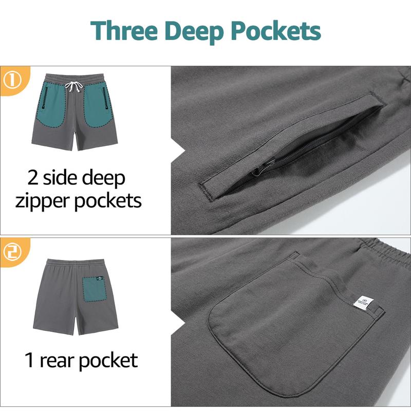 ·Men's Athletic Shorts With Three Pockets:This gym shorts for men have Elastic waistband with adjustable internal drawstring for a custom fit. Loose style, 2 side deep zipper pockets and 1 rear pocket allow you to put your phone, wallet, keys, or other small items while on the go