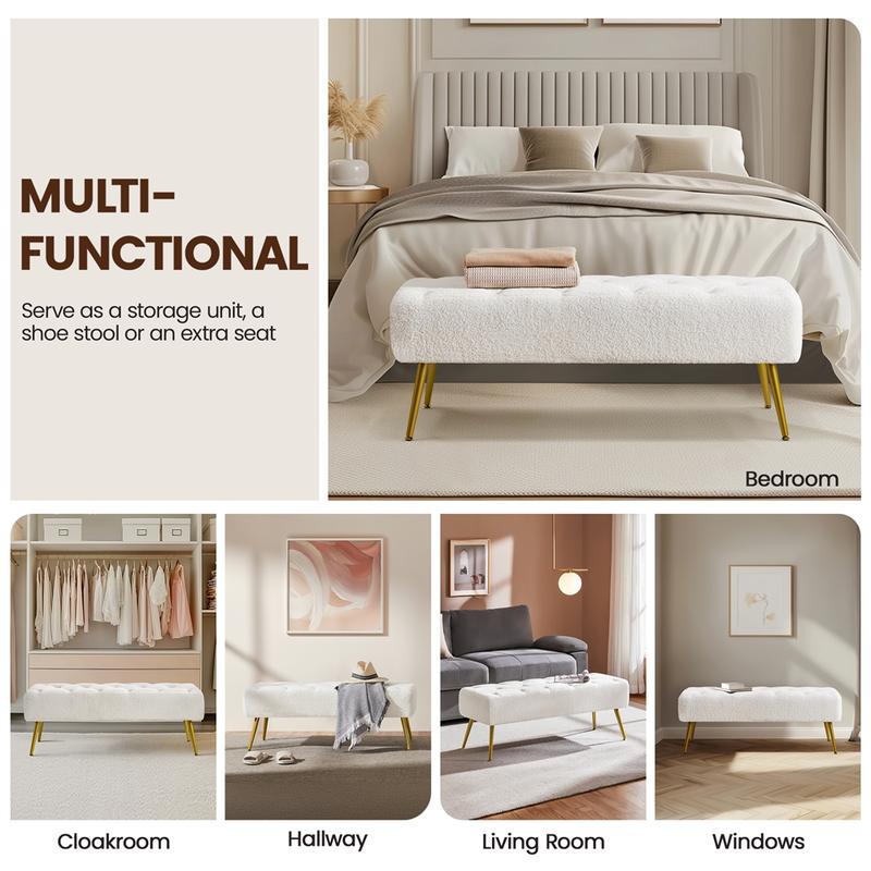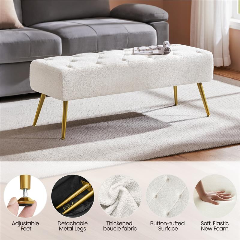 6. Simple & Versatile design: An ideal combination of fabric and metal creates a sense of warmth and a soothing vibe to your place. Along with a plurality of color colors, this tufted bench is compatible with most decoration styles