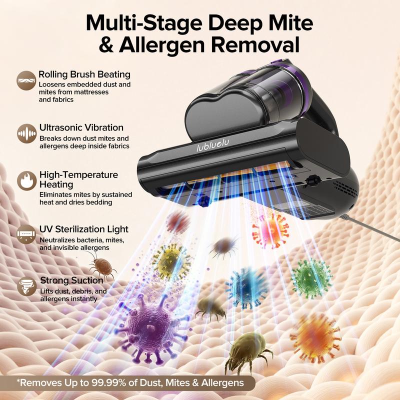 5. 【12.5Kpa Power】350W Motor Vacuum Cleaner for Bed, Sofa & Toy - Removes 100% Dust Mites, Dead Skin & Allergens in Seconds