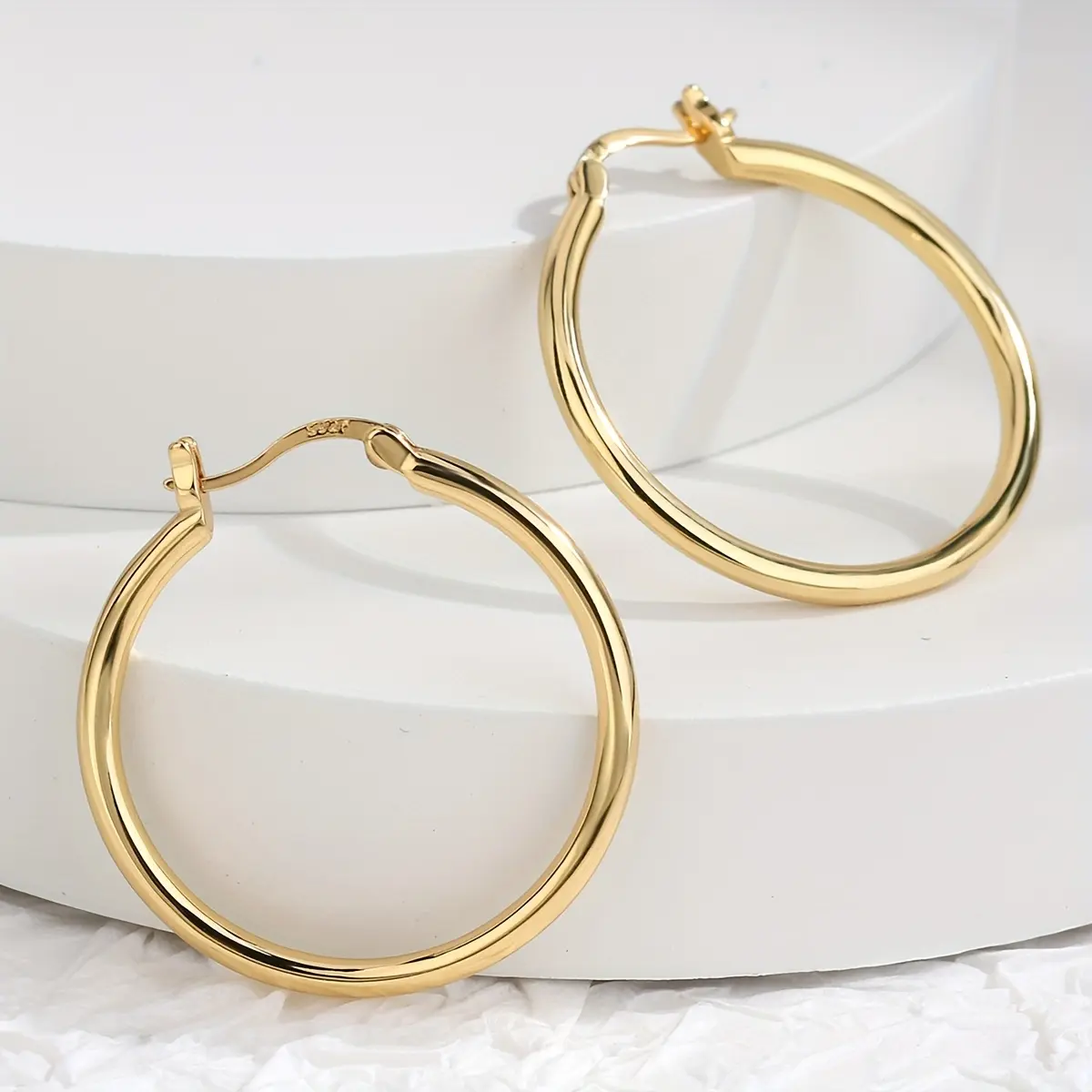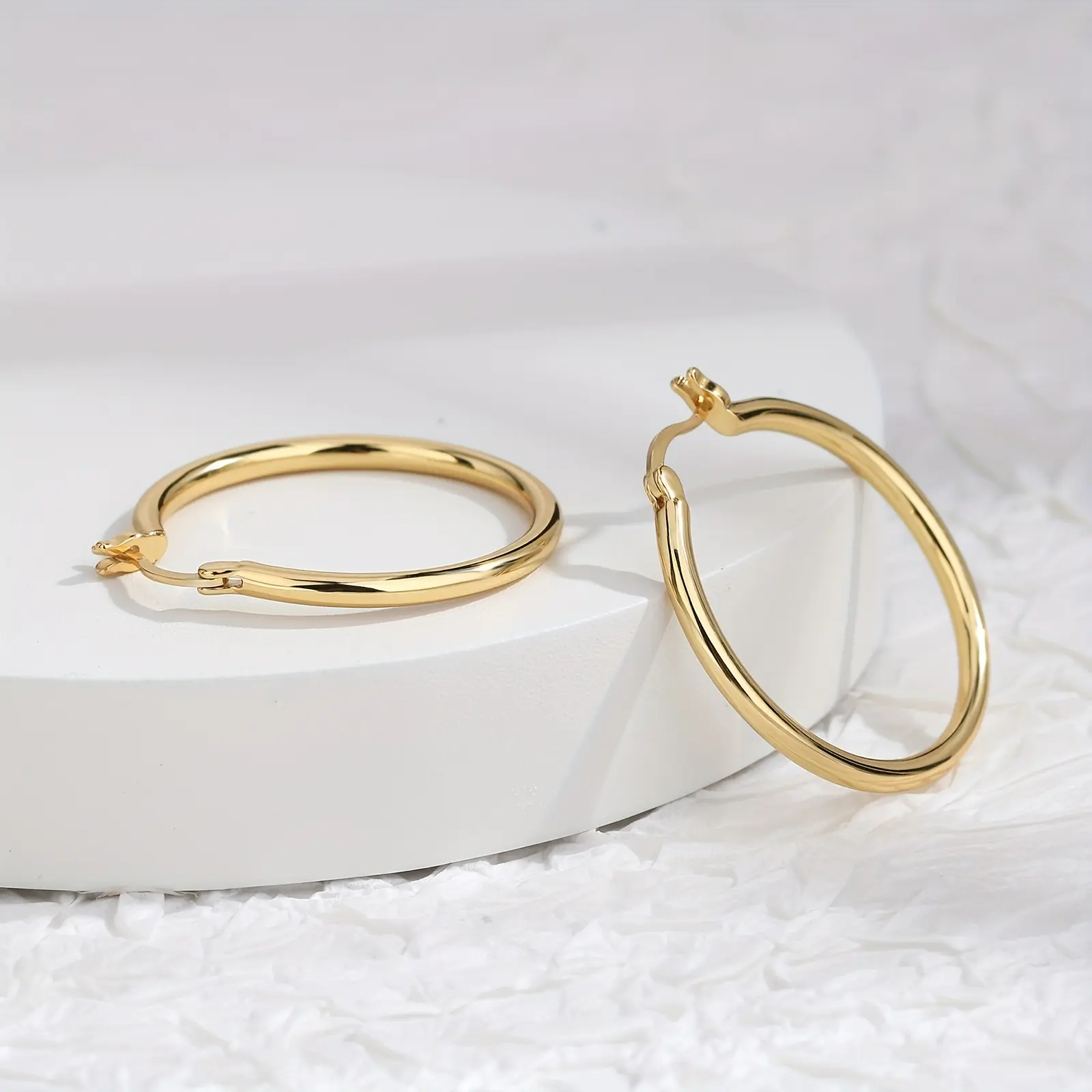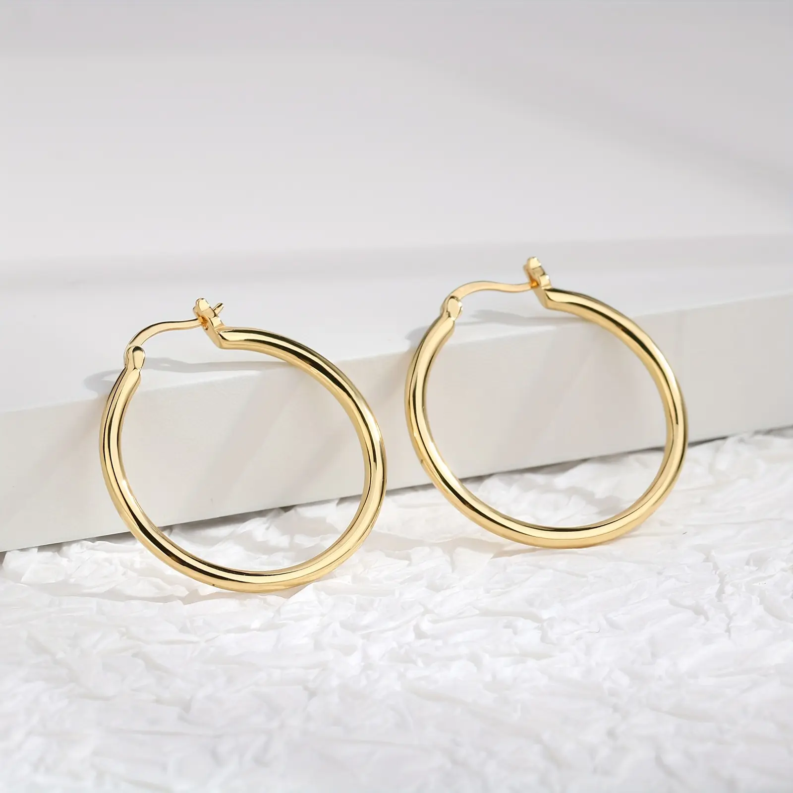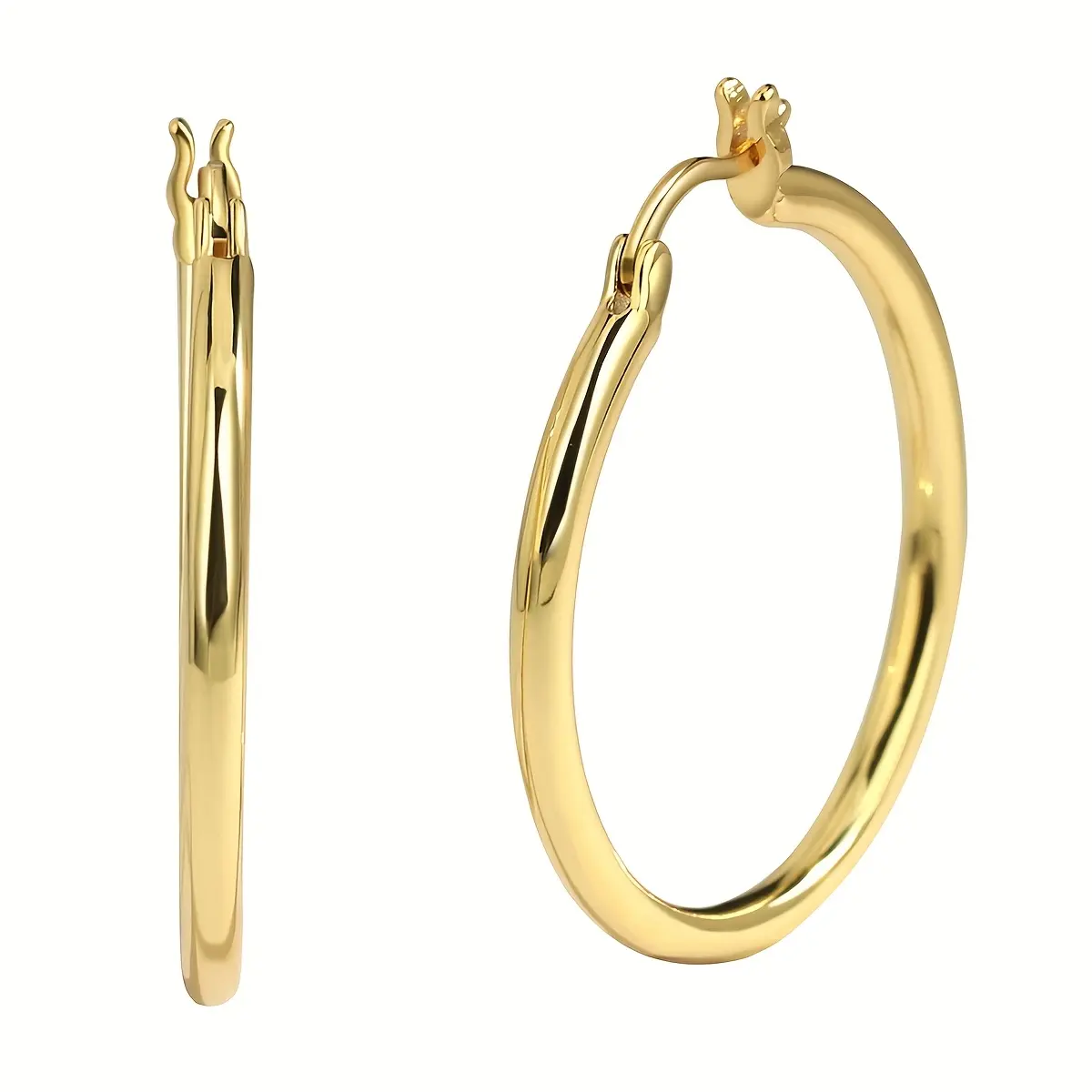 PAVOI 14K Gold Plated 925 Sterling Silver Post Lightweight Hoops | 20mm - 30mm Earring | Gold Hoop Earrings for Women
