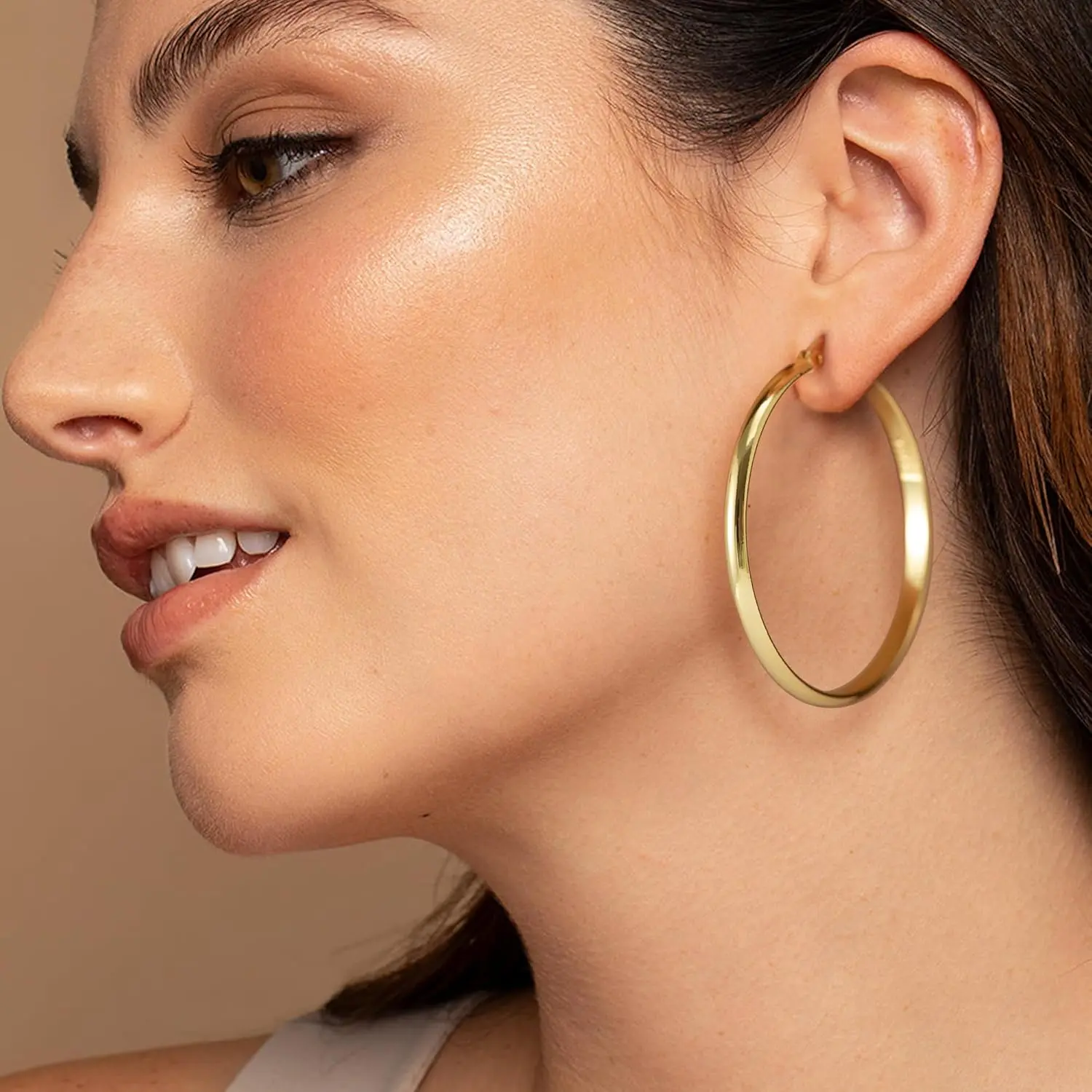 ·Our wide gold hoop earrings boast a 3mm wide design, making them lightweight compared to traditional large earrings (typically 4-5mm). Each pair weighs less than 15g, ensuring comfort for extended wear. 🌟