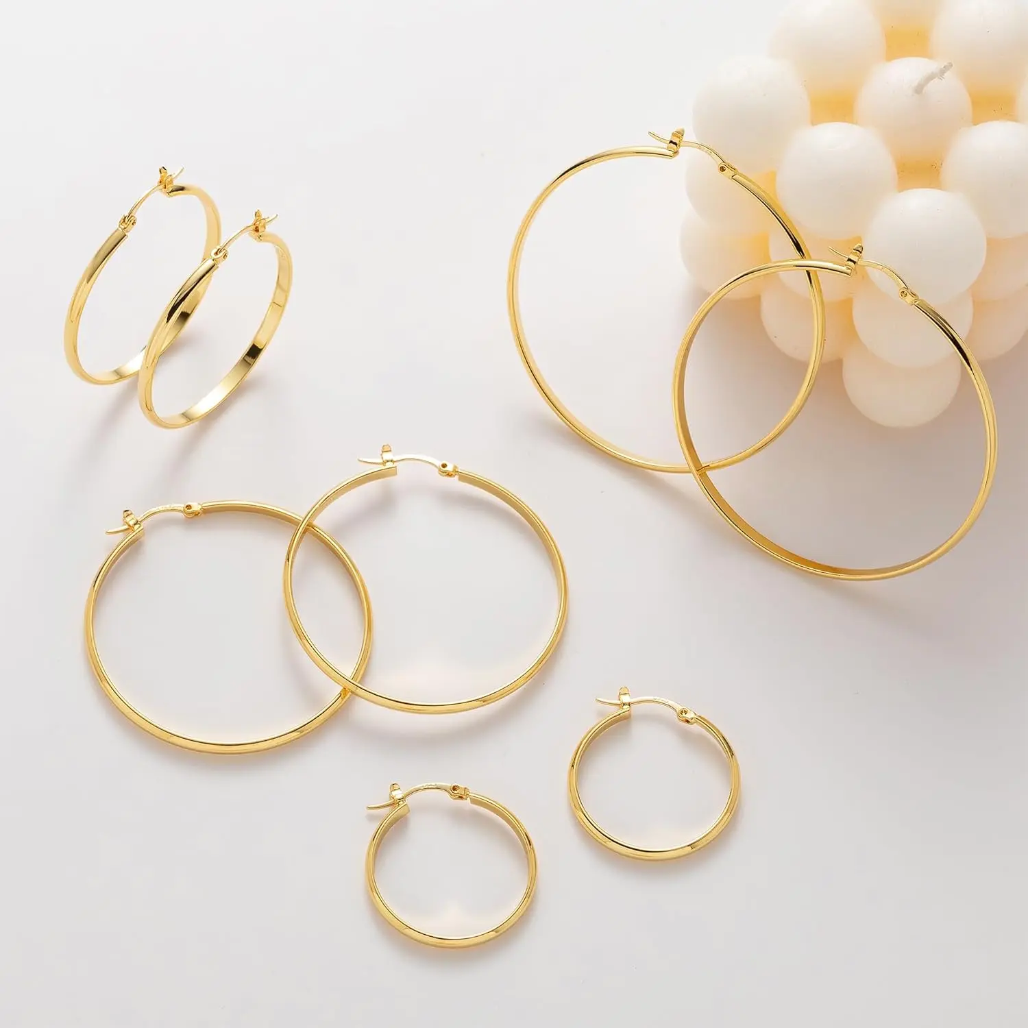 ·Available in sizes: 20/30/40/50/60/70MM. Choose the size that best suits your personal style. The secure click-top clasp makes them convenient to wear or take off. 🌟