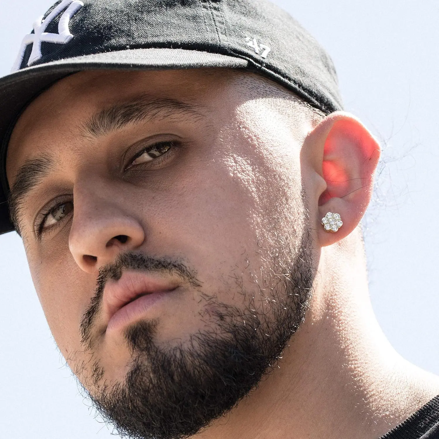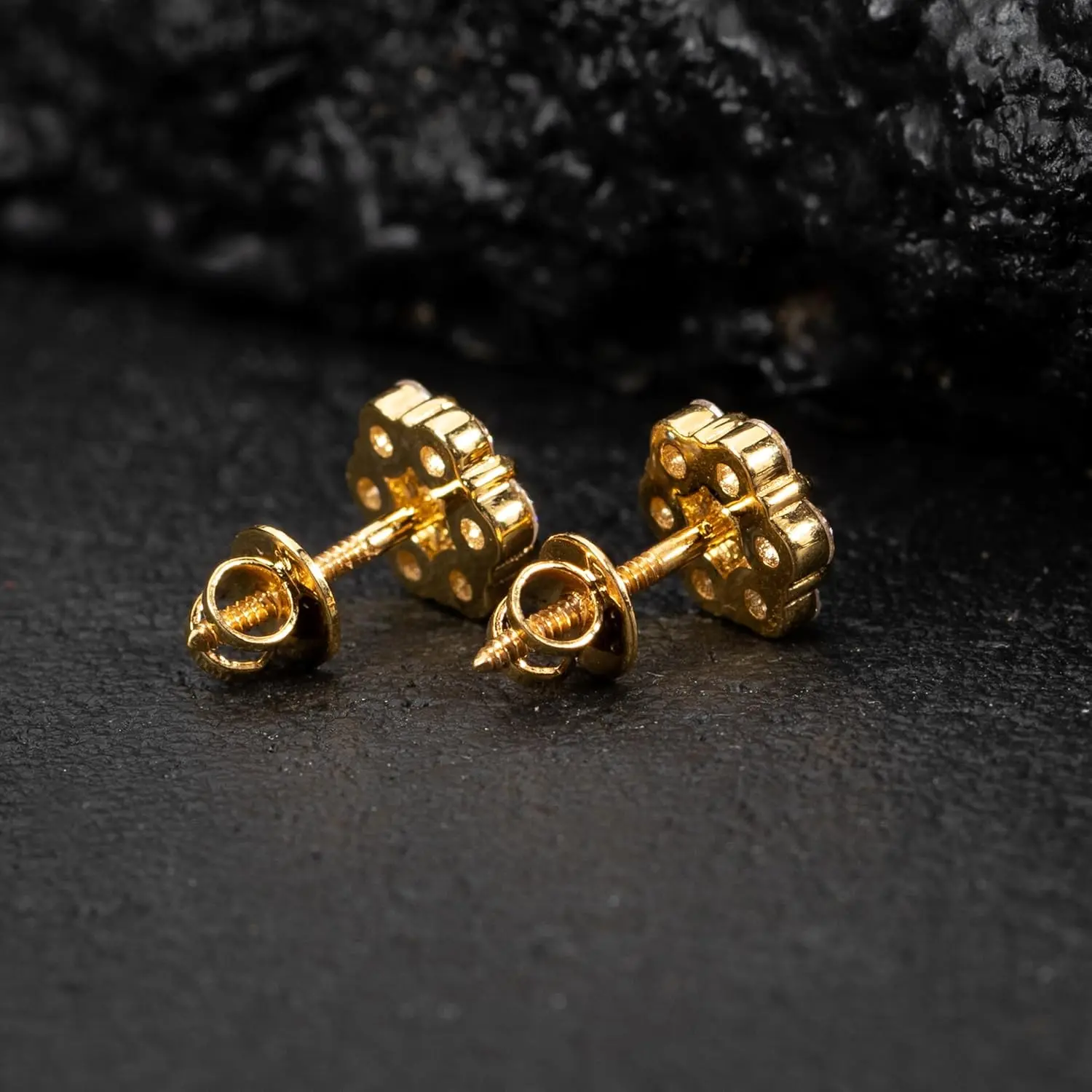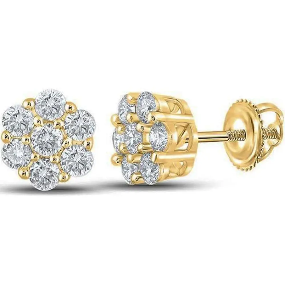 14K Gold Plated Flower Cluster Stud Earrings – Unisex Hip Hop Round Earrings, Iced-Out Style, Screw Back men's valentine's gifts