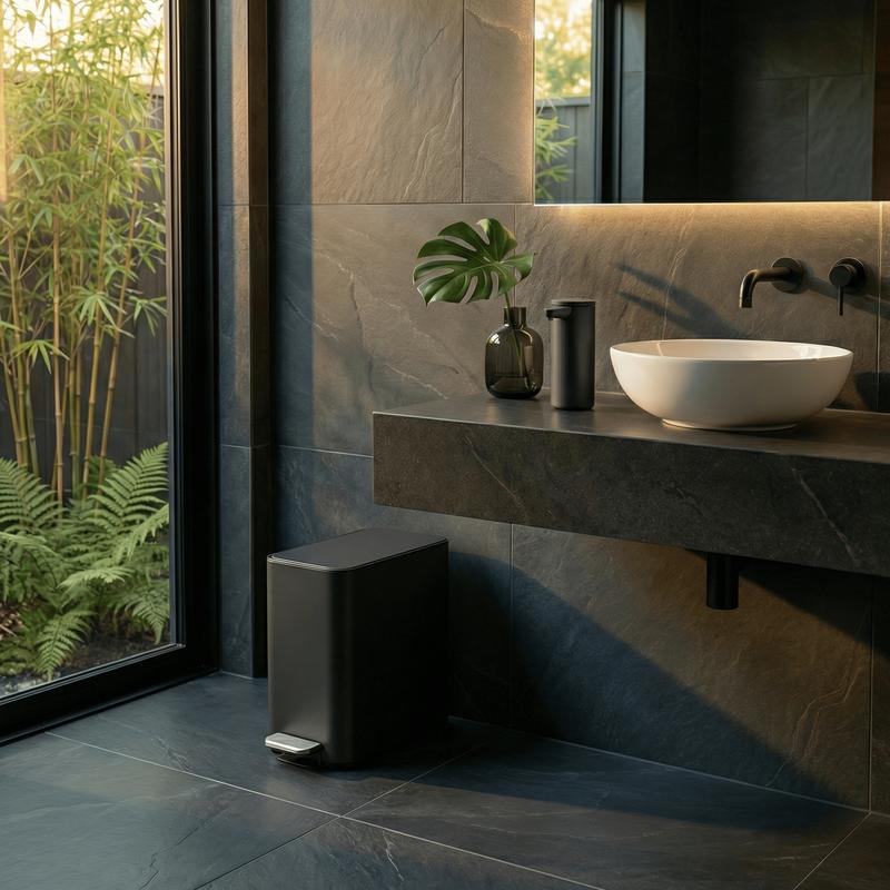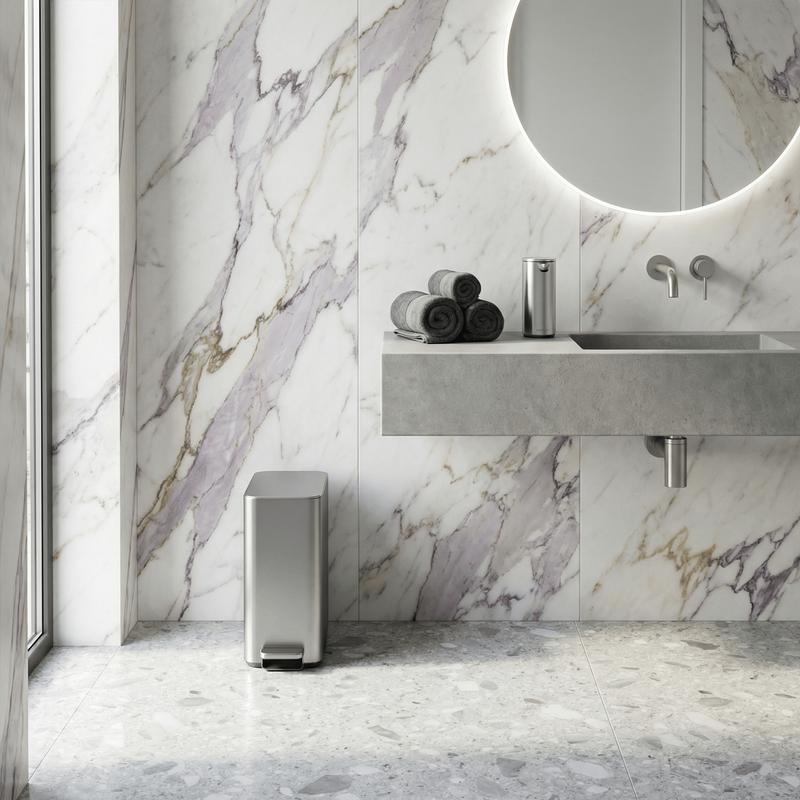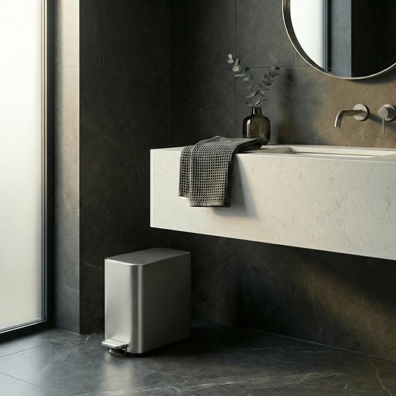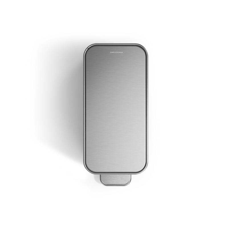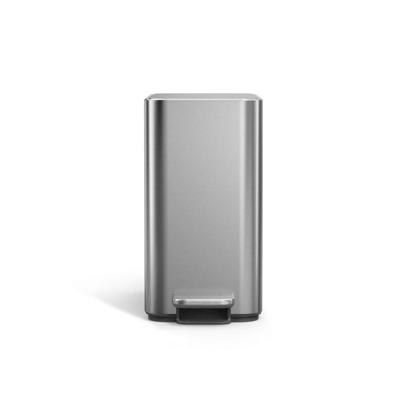 Slim profile shape and invisible hinge makes this can perfect for tight spaces. Liner pocket stores and dispenses liners one at a time for a faster liner change. All-steel durable steel pedal is designed to last, and our patented lid shox technology ensures a smooth, silent close every time. The can's stainless steel surface is protected by an invisible silver-ion coating that resists fingerprints and germs. Removable inner bucket makes it easy to access the liner pocket. And code R custom fit liner fits this can perfectly — no bunching or slipping for a cleaner trash experience. Liner refill packs store easily in this can's liner pocket.