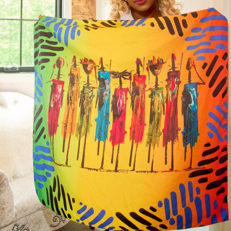 Meet the Maasai Luxe Scarf (33" x 33"), a bold celebration of heritage, pride, and power. This vibrant twill silk masterpiece features an expressive tribute to the legendary Maasai warriors, wrapped in electrifying strokes of color that radiate confidence. Wear it as your crown, your armor, or your canvas, either way, you're making a statement steeped in culture and unapologetic beauty.