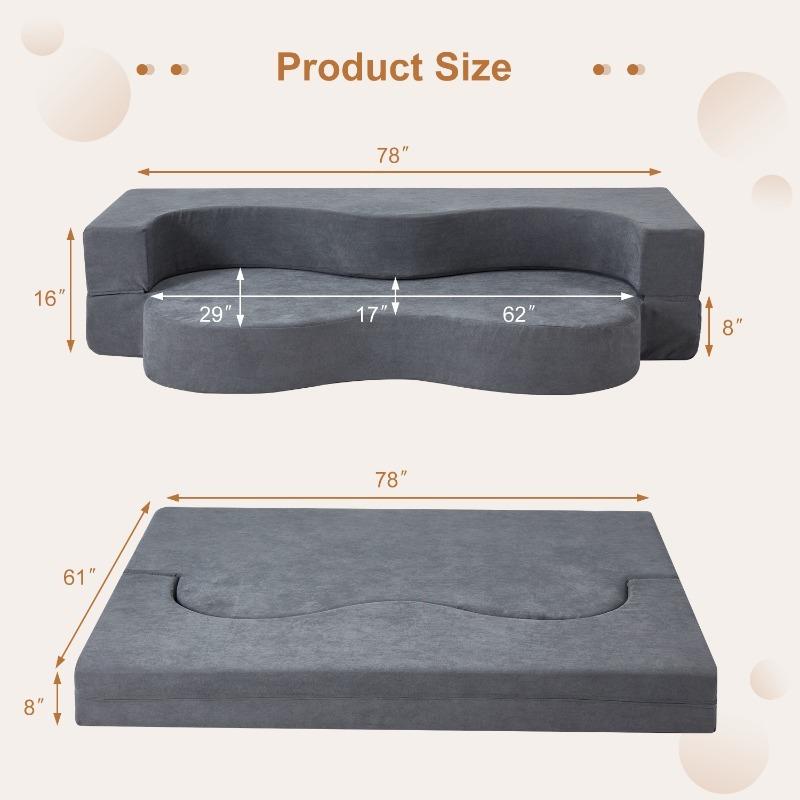 Filled with premium high-density foam, this folding sofa bed provides excellent support and softness for multiple uses. Whether used as a sofa bed, floor mattress, yoga mat, or lounge cushion, it delivers long-lasting comfort and reliable support. Folds easily for compact storage when not in use, saving valuable space.