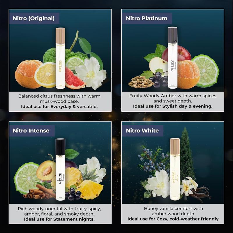 7. Nitro White A clean, airy fragrance with soft musk and fresh notes, offering a smooth, subtle scent ideal for everyday comfort.