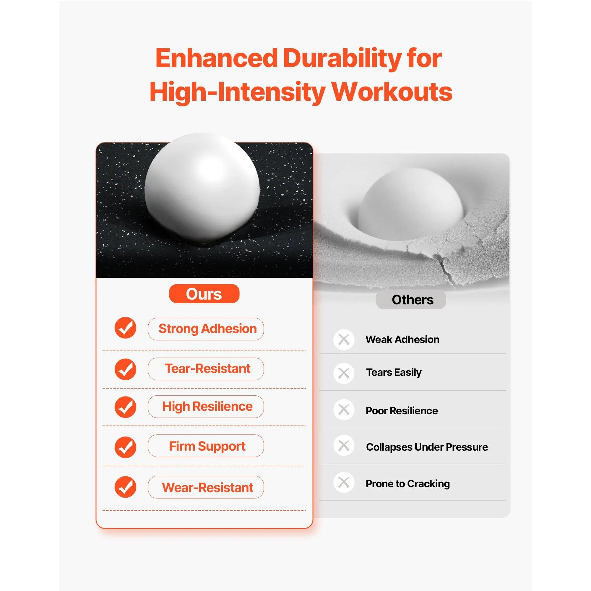 Upgraded Material: The mat is made of 2-in-1 material, 0.56 inch rubber top with EVA foam ensures excellent slip resistance.This gym flooring for home gym design effectively absorbs shock and rebounds while providing enough grip for safe workouts.24 Square Feet Coverage: The gym mats include 6 tiles and 12 borders, covering 24 sq ft.The workout mats can reduce the noise effectively, allowing you to work out upstairs without disturbing those below, making your fitness routine neighbor-friendly.Wear and Scratch Resistant: The surface is made of high-tensile rubber material, making it durable against wear and scratches.These rubber floor mats resist marks from foot traffic and are not easily damaged.Interlocking Design: Our interlocking foam exercise mats provides quick and convenient assembly for your home fitness program.Easy Care: Enjoy easy maintenance with our cleanable gym floor mat; simply wipe or rinse the surface for quick and effortless cleaning, ensuring your rubber flooring tiles stay fresh and ready for your next workout.VEVOR 0.56 Inch Thick Gym Floor Mats, 6 Tiles Rubber Top with EVA Foam, 25" x 25" Gym Flooring Workout Mats with 25 sq.ft Coverage, Interlocking Puzzle Gym Mats for Gym, Home, Garage, Black & White