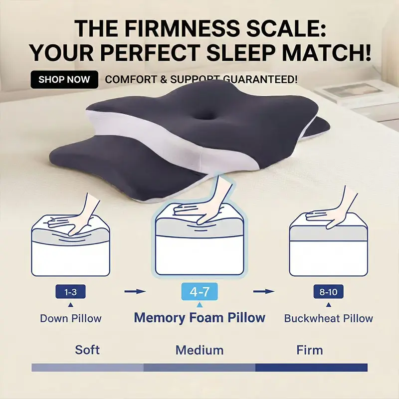 Memory Neck Pillow, Adjustable Ergonomic Memory Foam Neck Pillows, Cervical Support, Breathable & Removable Pillowcase, Mother's Gift