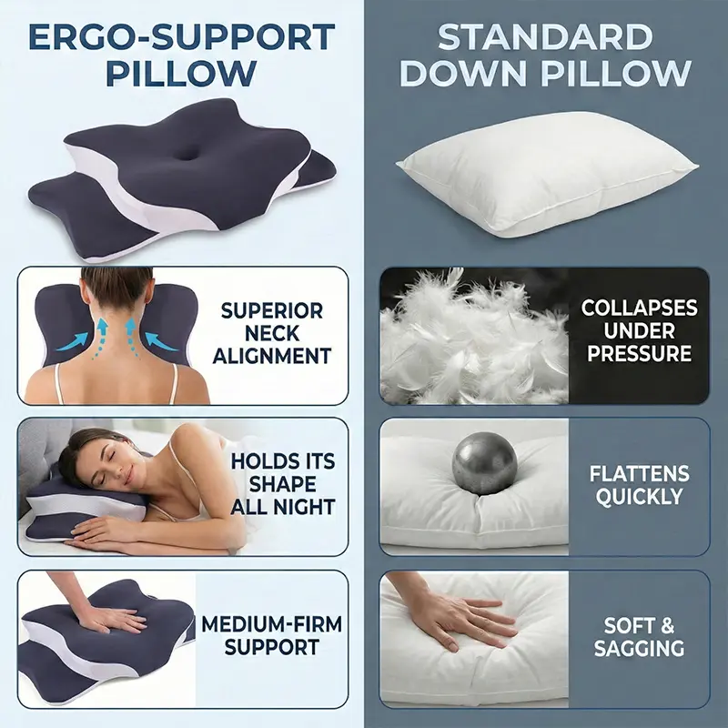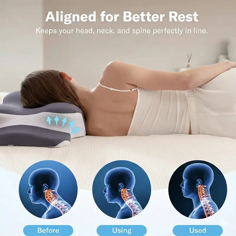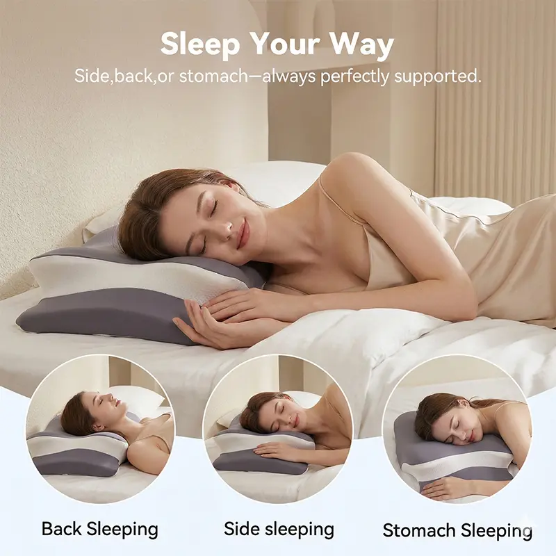 Cervical Pillow for Cozy Sleep, Odorless Ergonomic Contour Memory Foam, Orthopedic Bed Pillow for Side, Back, and Stomach Sleepers
