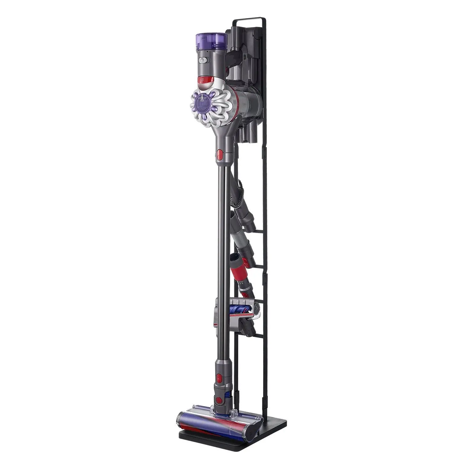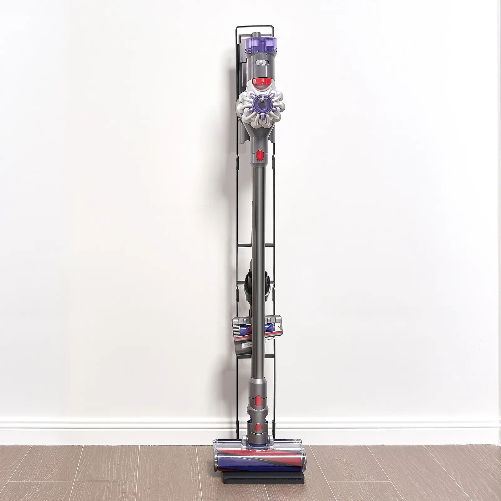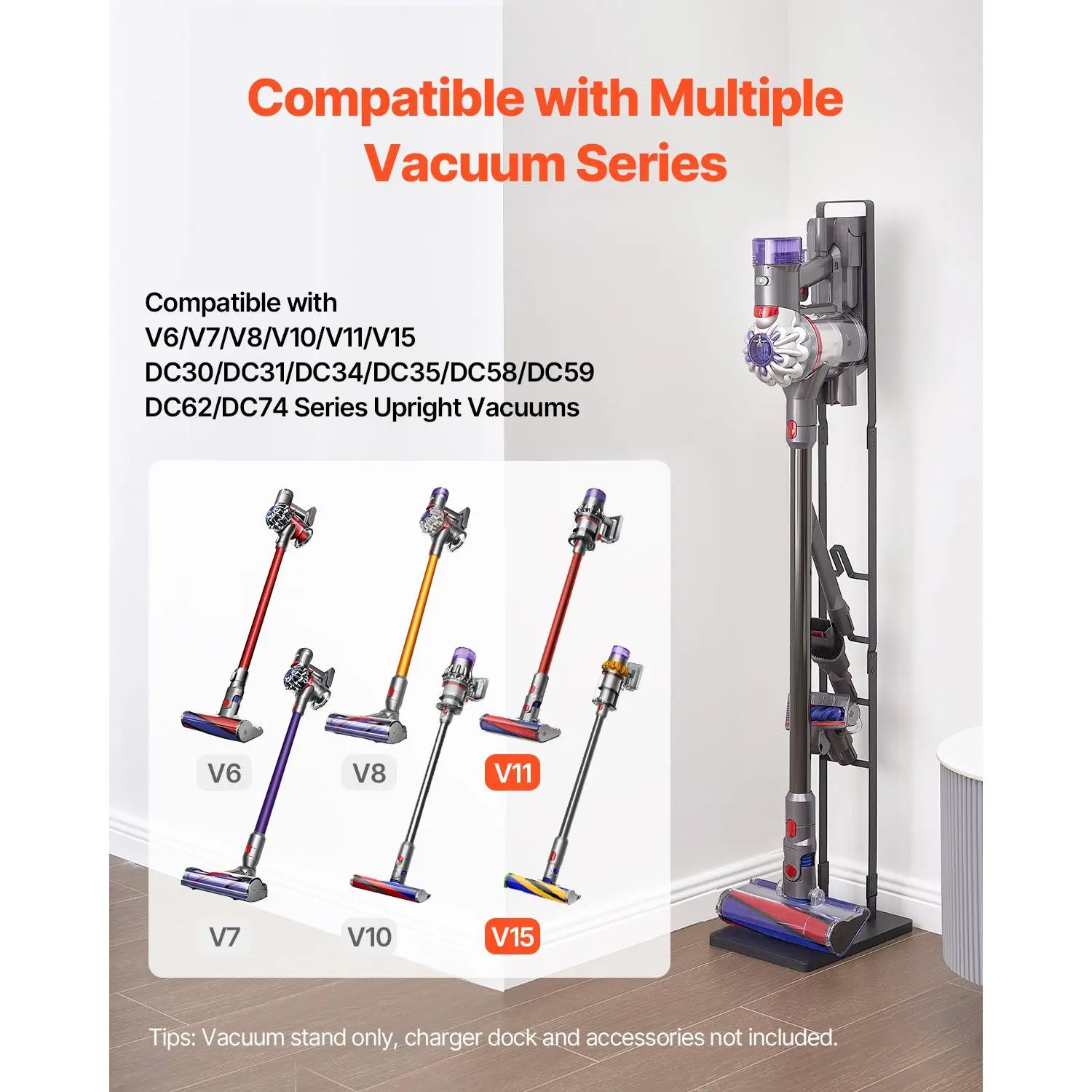 Wide Compatibility: Designed specifically for Dyson vacuums, this stand is compatible with multiple Dyson models (V6, V7, V8, V10, V11, V15, DC30, DC31, DC34, DC35, DC58, DC59, DC62, DC74).It efficiently stores your vacuum and accessories in the kitchen, living room, or garage, freeing up valuable space.Note: Vacuum stand only, charger dock and accessories not included.Sturdy and Long-lasting: This vacuum holder is made with high-strength SPCC cold-rolled steel, and its 4.4 lbs/2 kg weighted base ensures stability.Each hook supports up to 11.02 lbs/5 kg, easily holding the vacuum and accessories.The anti-slip pads on the base keep the stand securely in place, avoiding tipping or sliding.Efficient Storage: This vacuum stand stands at 50 in/1270 mm, with 4 hooks to neatly store your vacuum and accessories, avoiding loss.It saves space, avoids accidental drops and damage, and extends the vacuum's lifespan while keeping your home tidy.Space-Saving: The stand's base measures 11.41 x 8.7 in, utilizing vertical space and fitting ideally in corners or narrow areas.The black, minimalist design blends easily with any home style.Place it in a storage room or corner to keep small spaces organized.Convenient Installation: Includes tools and instructions for quick assembly in minutes. No drilling required, protecting your walls and allowing flexible placement anywhere, making your home more organized and convenient.VEVOR Vacuum Stand, Compatible With Dyson V6 V7 V8 V10 V11 V15, Stable Vacuum Stand Holder with 4 Hooks for Dyson DC30 DC31 DC34 DC35 DC58 DC59 DC62 D74 Cordless Upright Vacuum Cleaners & Accessories