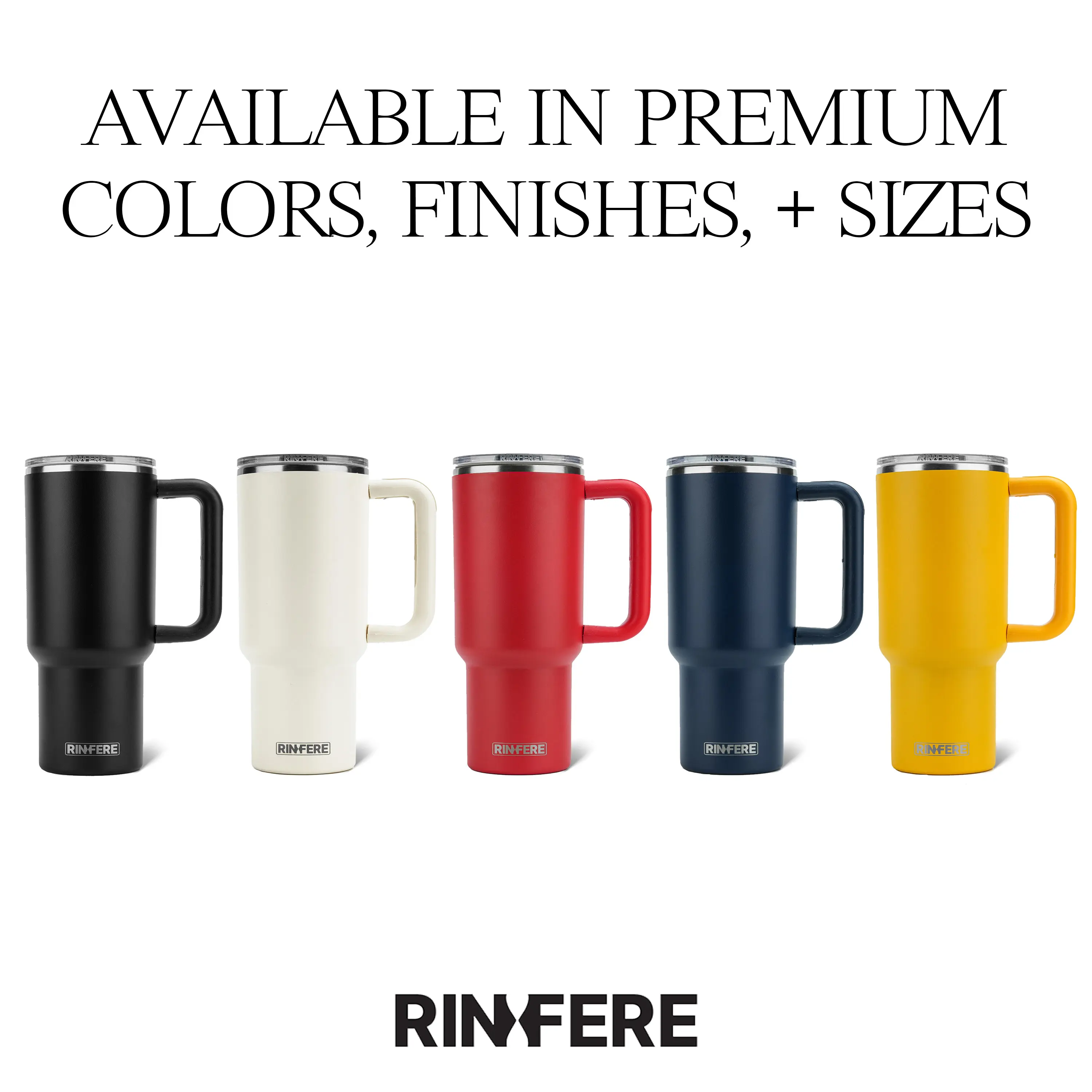 ·VACUUM INSULATION: This tumbler from RINFERE crafted from premium 18/8 stainless steel, our tumbler boasts unrivaled durability, rust-resistance, and is free from harmful BPA, ensuring your beverage stays pure of its taste and your tumbler stands the test of time