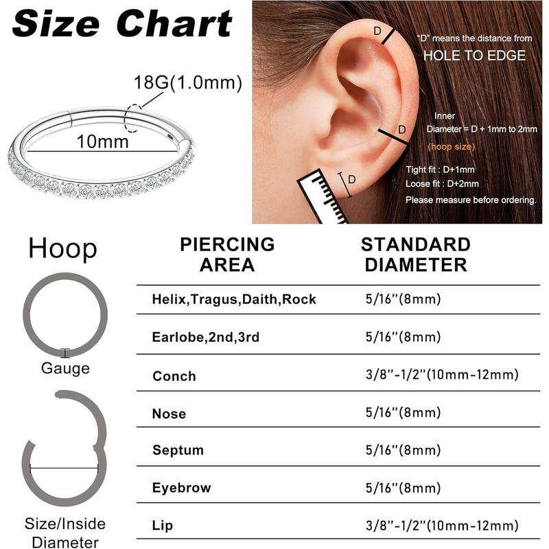 ·【Multifunctional Use】These CZ hinged segment rings have multiple functions, can be used as tragus piercing jewelry,conch piercing,helix earrings,daith earrings,rook piercing,cartilage hoop earrings,septum rings,nose rings hoop,lip rings etc.