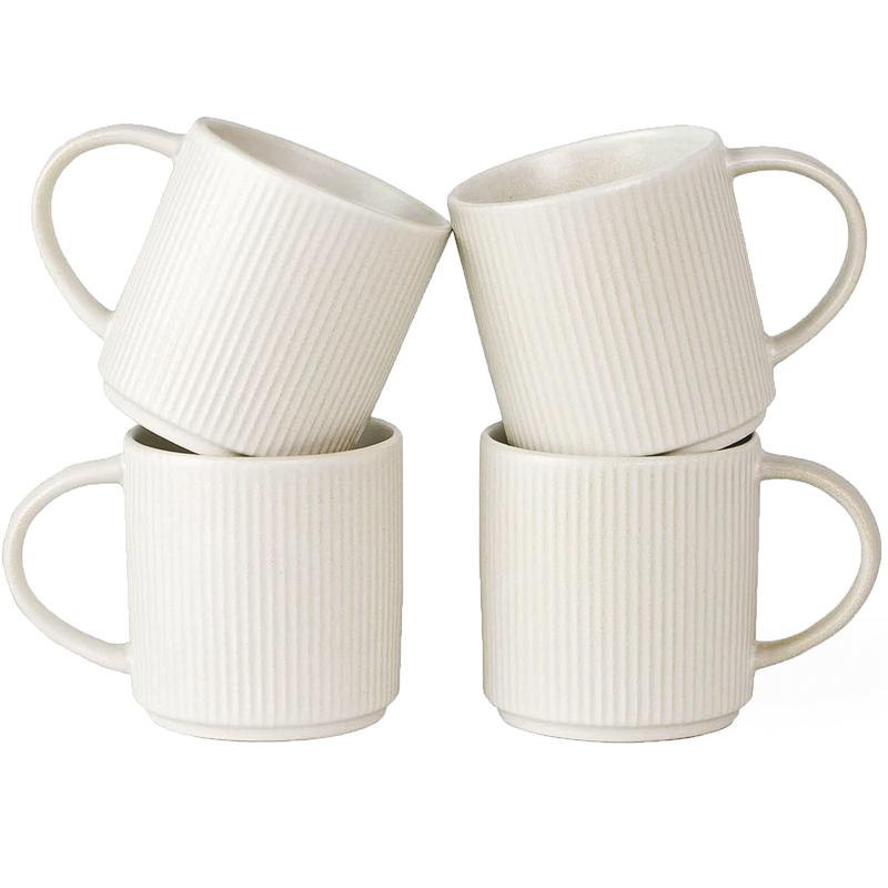5. Famiware Star Series 4-piece Stoneware 12-oz Coffee Mug Set Stylish, Matte White