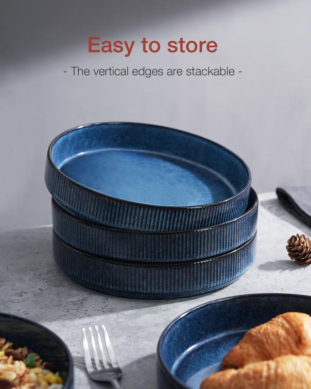 This stunning pasta bowl set is made of 100% lead-free glaze and Double Reactive glaze. The edge of each bowl is designed with raised vertical stripes with bright colors to make your table brilliant. It is a stylish dining bowl with a high-level appearance, perfect for a gift. The dish set can hold any food you like, which is a delicate gift for housewarming, weddings, and parties. Each dish is made of high-quality stoneware that is dishwasher and microwave-safe. Choosing your favorite tableware to make your eating fun and romantic!