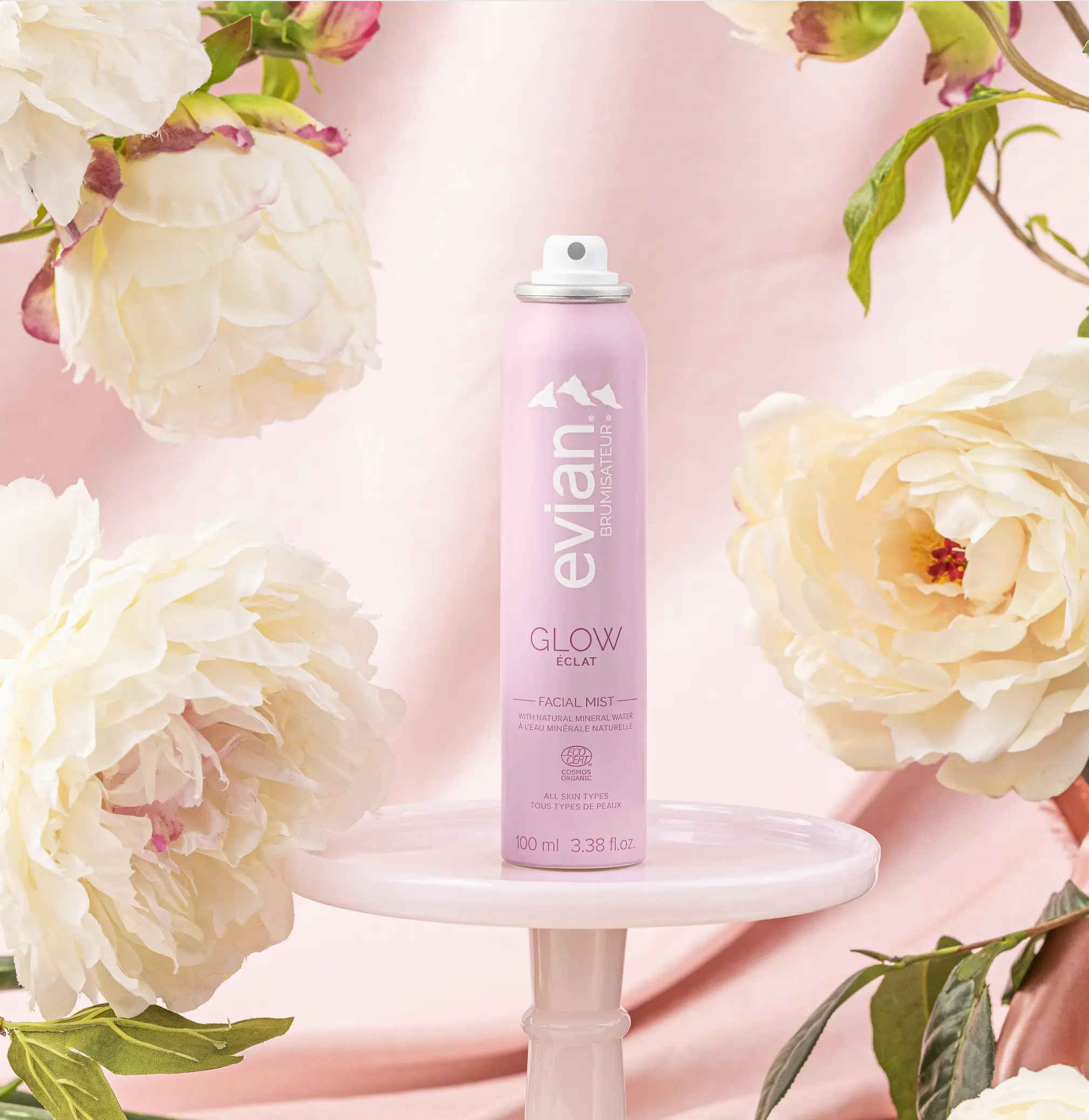·Mist Evian Glow between steps in your skincare routine to nourish skin and enhance radiance