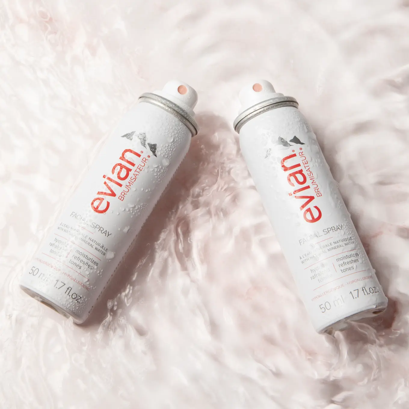 ·Evian Facial Mist contains pure Evian water, known for its famous mineral balance, sourced directly from the French Alps
